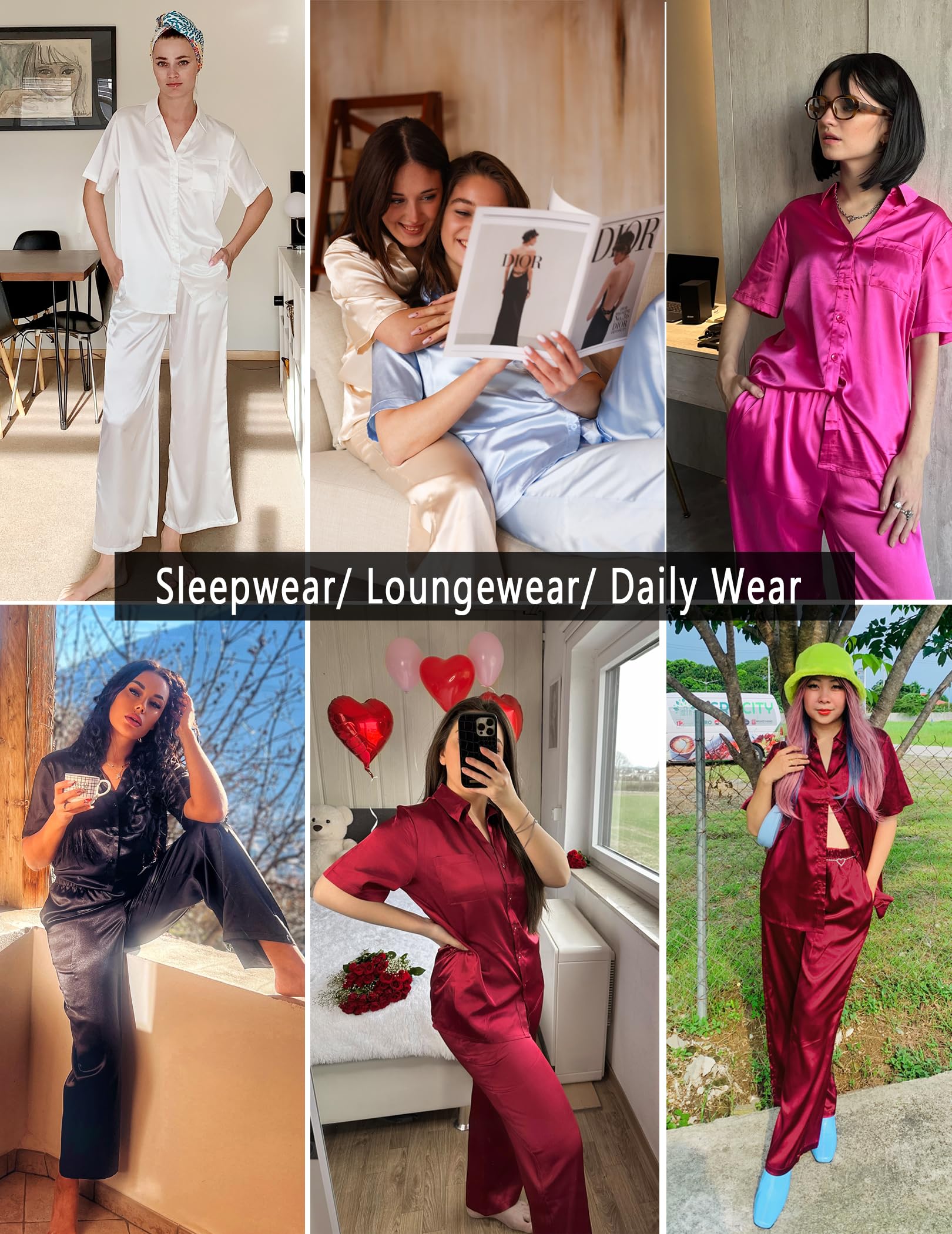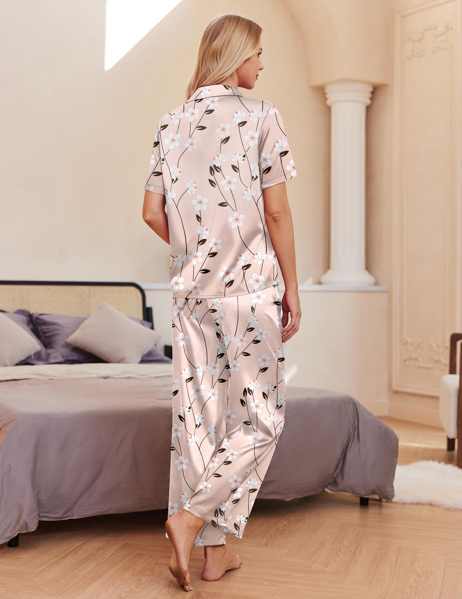 Material: Silk pajama set is made of premium lightweight, breathable and skin-friendly fabric, just like wrapped in a cloud, helping you have a sound sleep