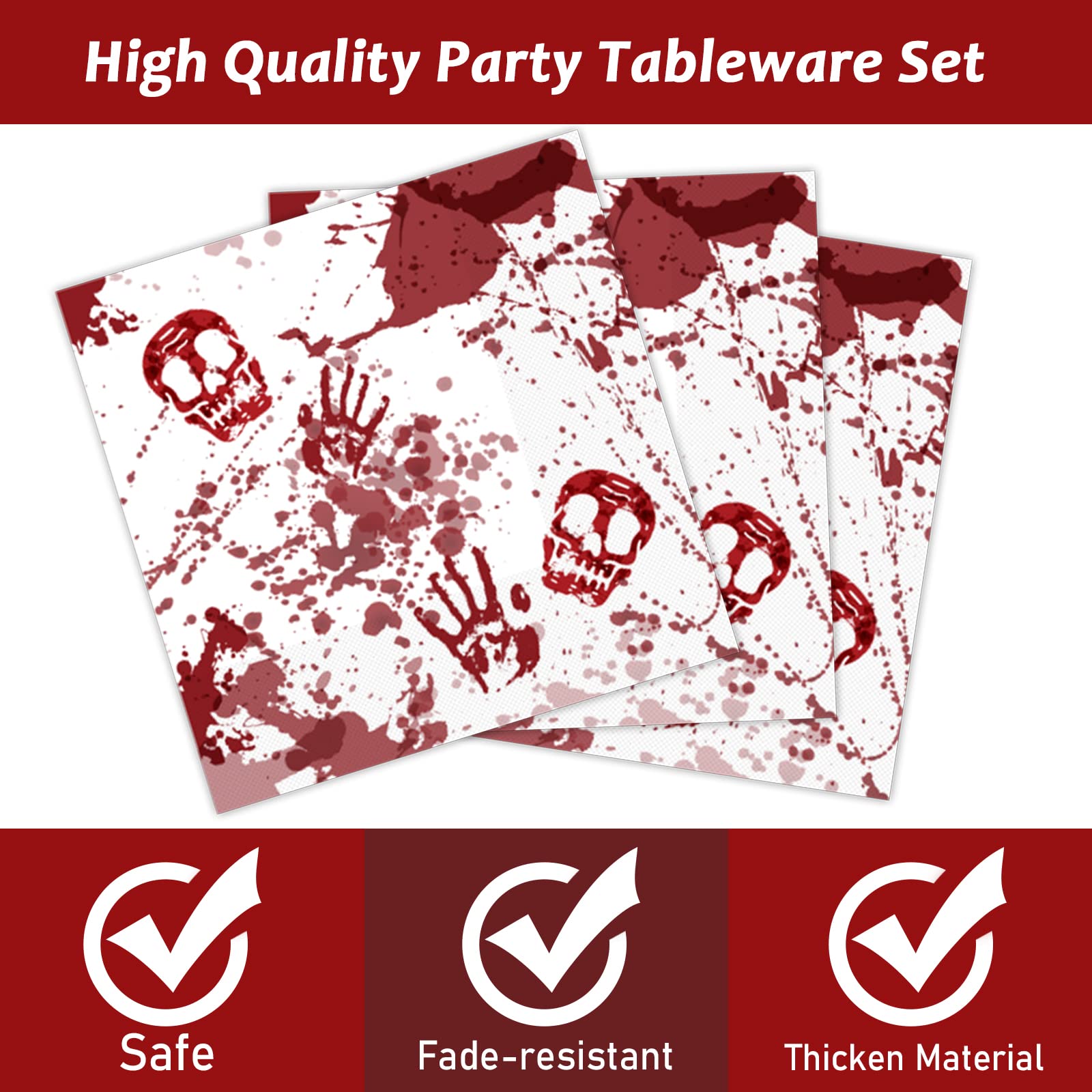 【Perfect Bloody Good Time Party Complement】These Halloween theme party packs are a perfect complement to your theme party decorations. They can fit well with your other Halloween party decorations such as Halloween party tablecloth,Halloween party banner, Halloween party bags,Halloween party backdrops.