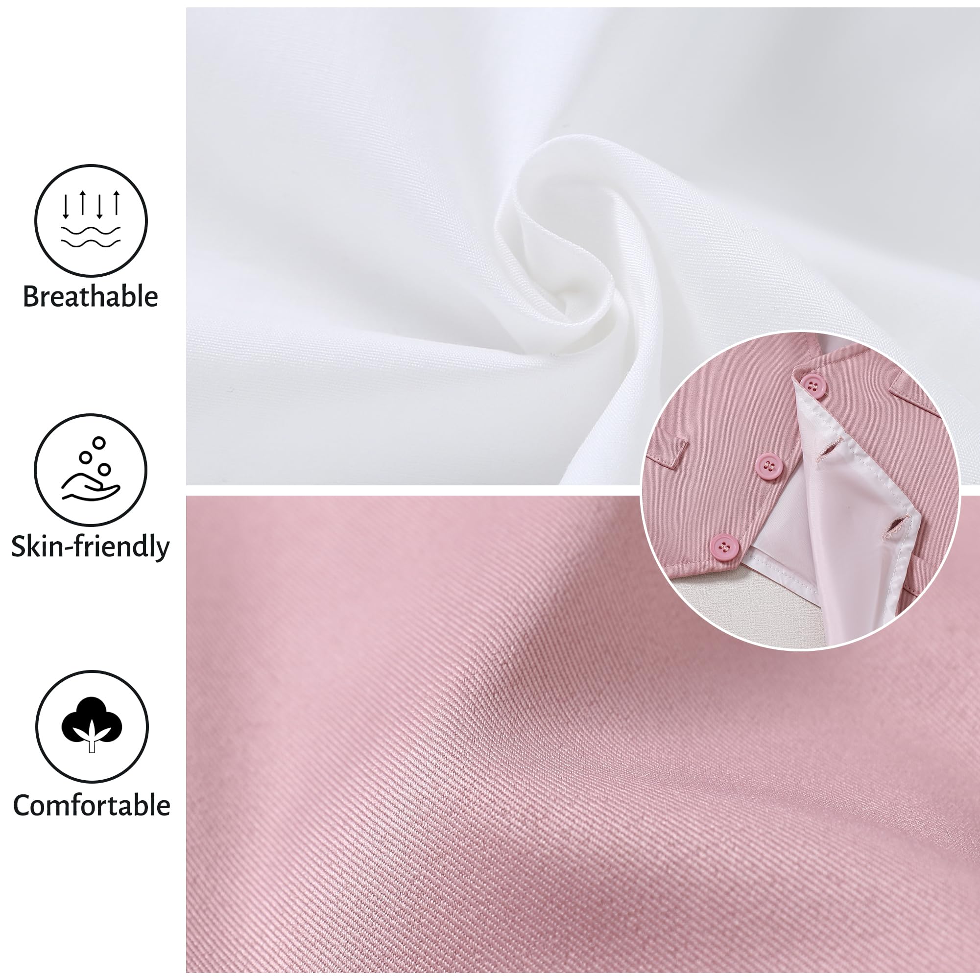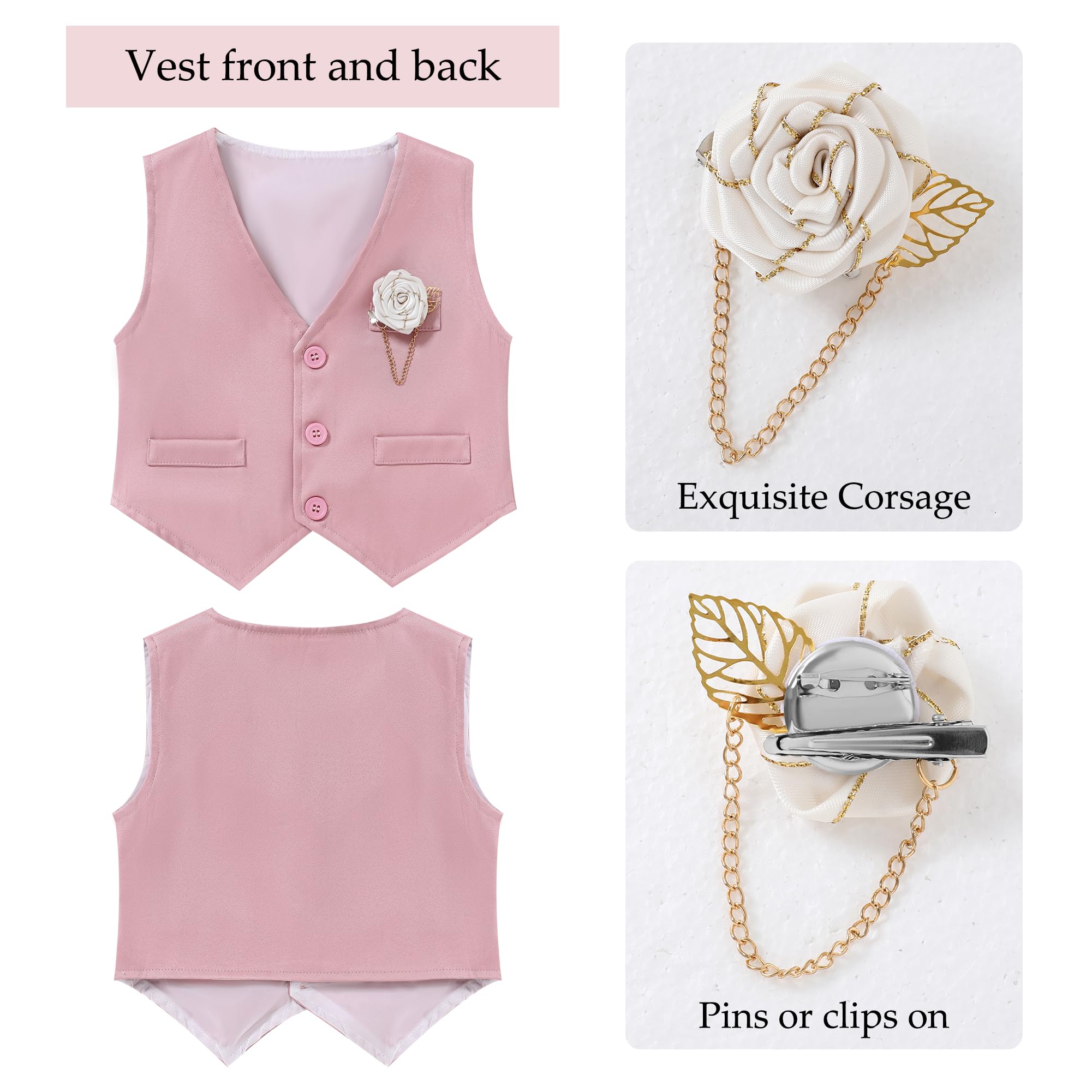 5-Pieces Formal Suit Set: This toddler suit including 1PC long sleeve dress shirt+ 1PC vest + 1PC suspender pants + 1PC detachable bow tie + 1PC elegant boutonniere.