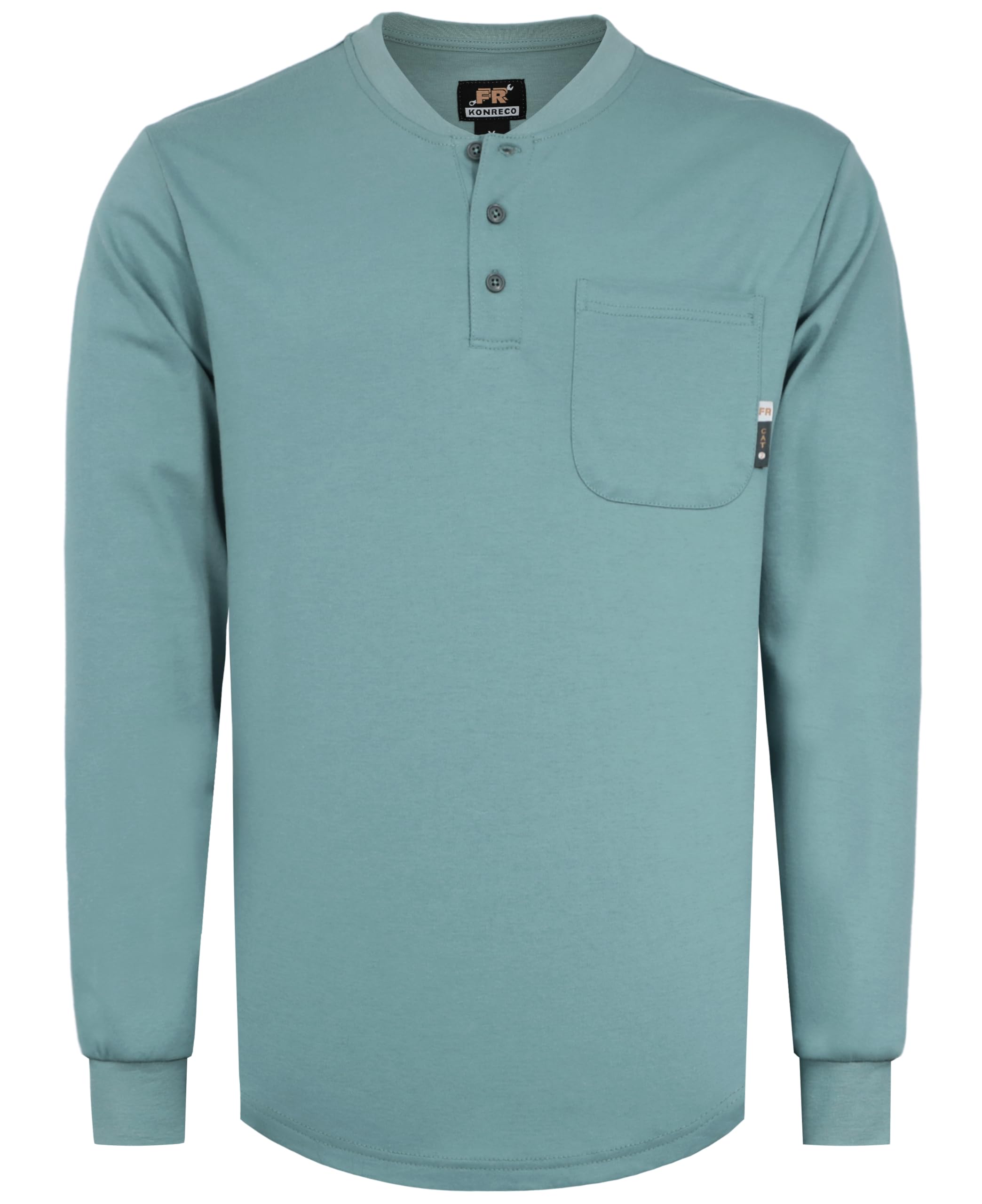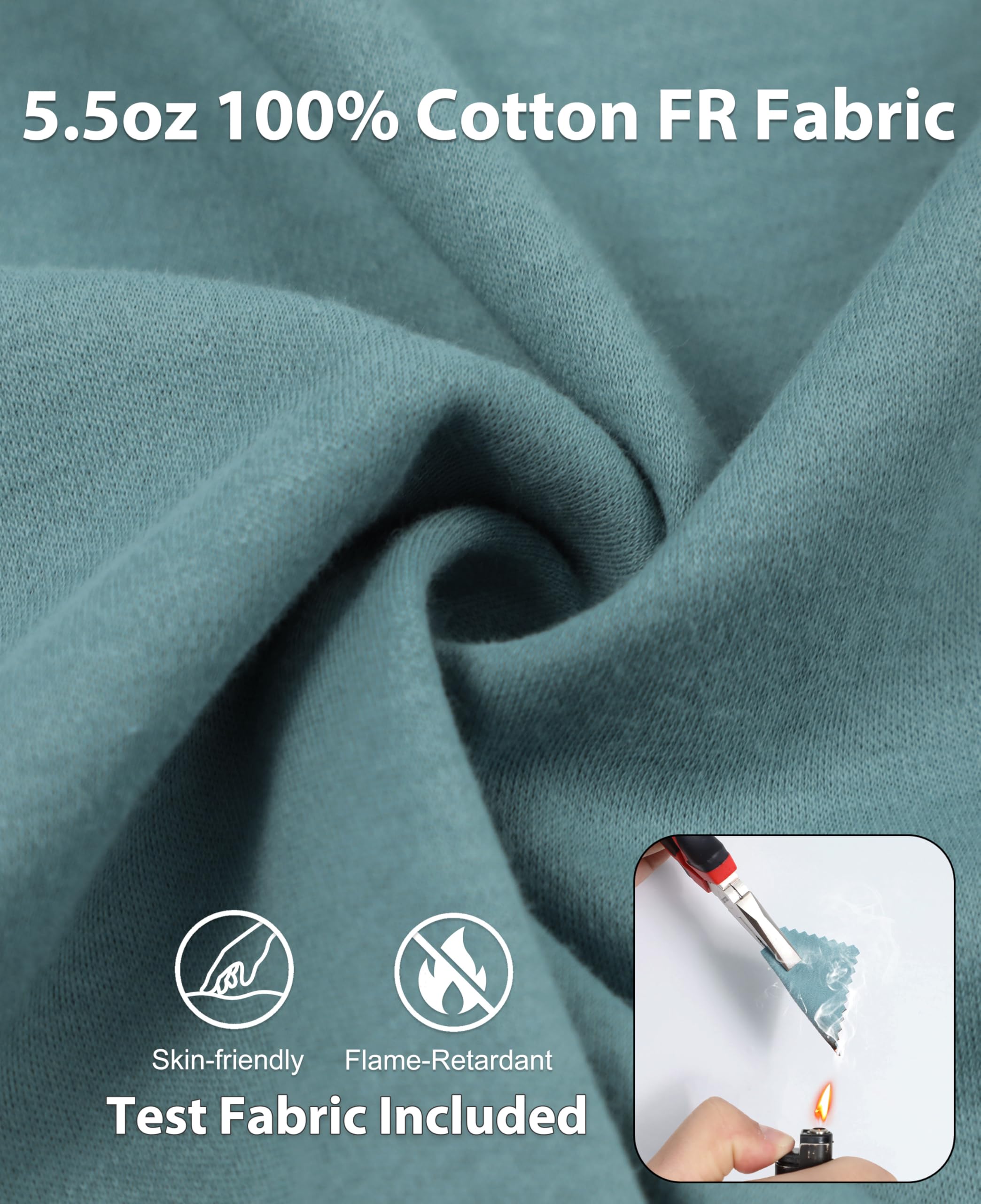 FR MATRIALS:5.5OZ cotton knit FR treated,FR buttons,FR sewing threads!Clear FR tag on arms and bottom front.
