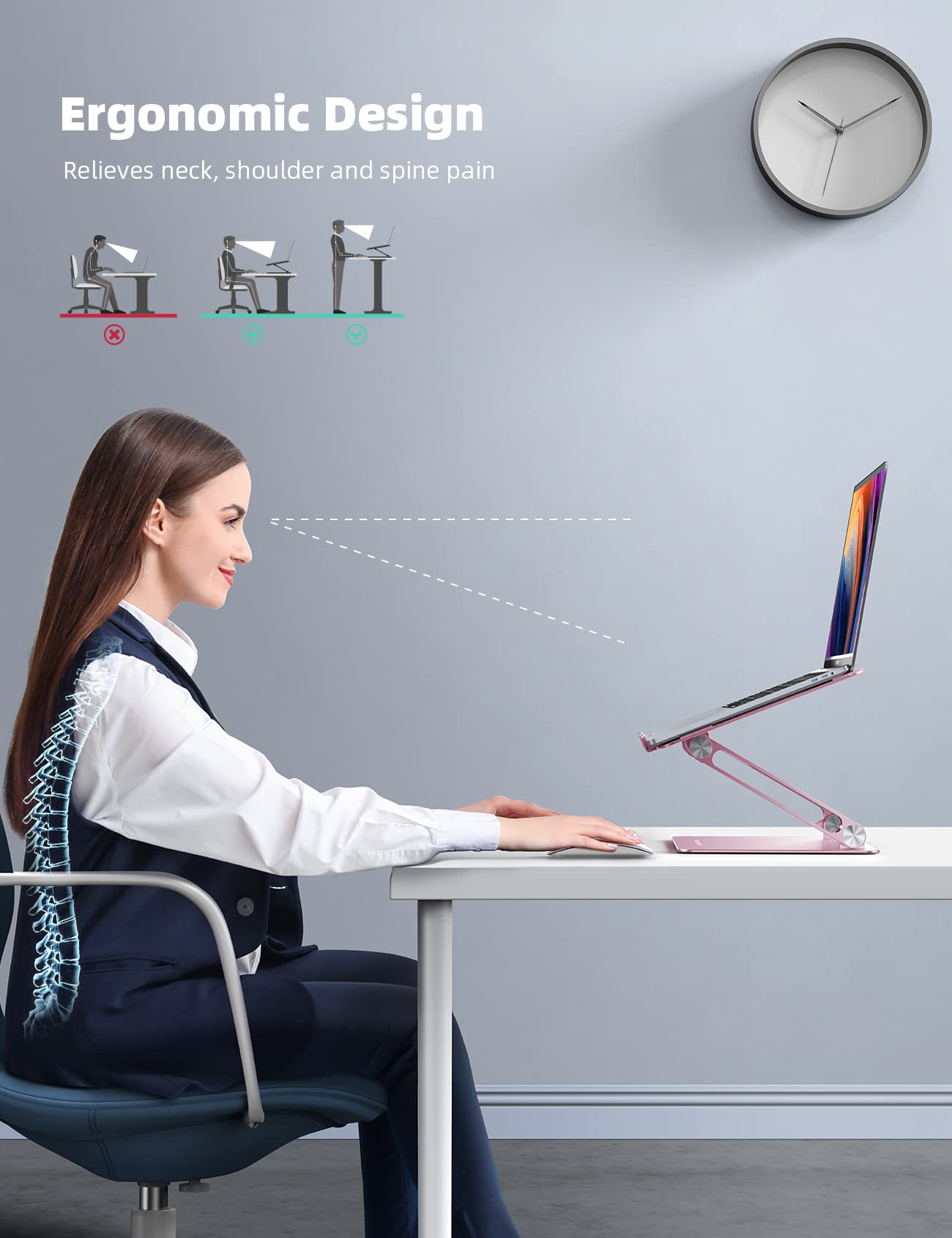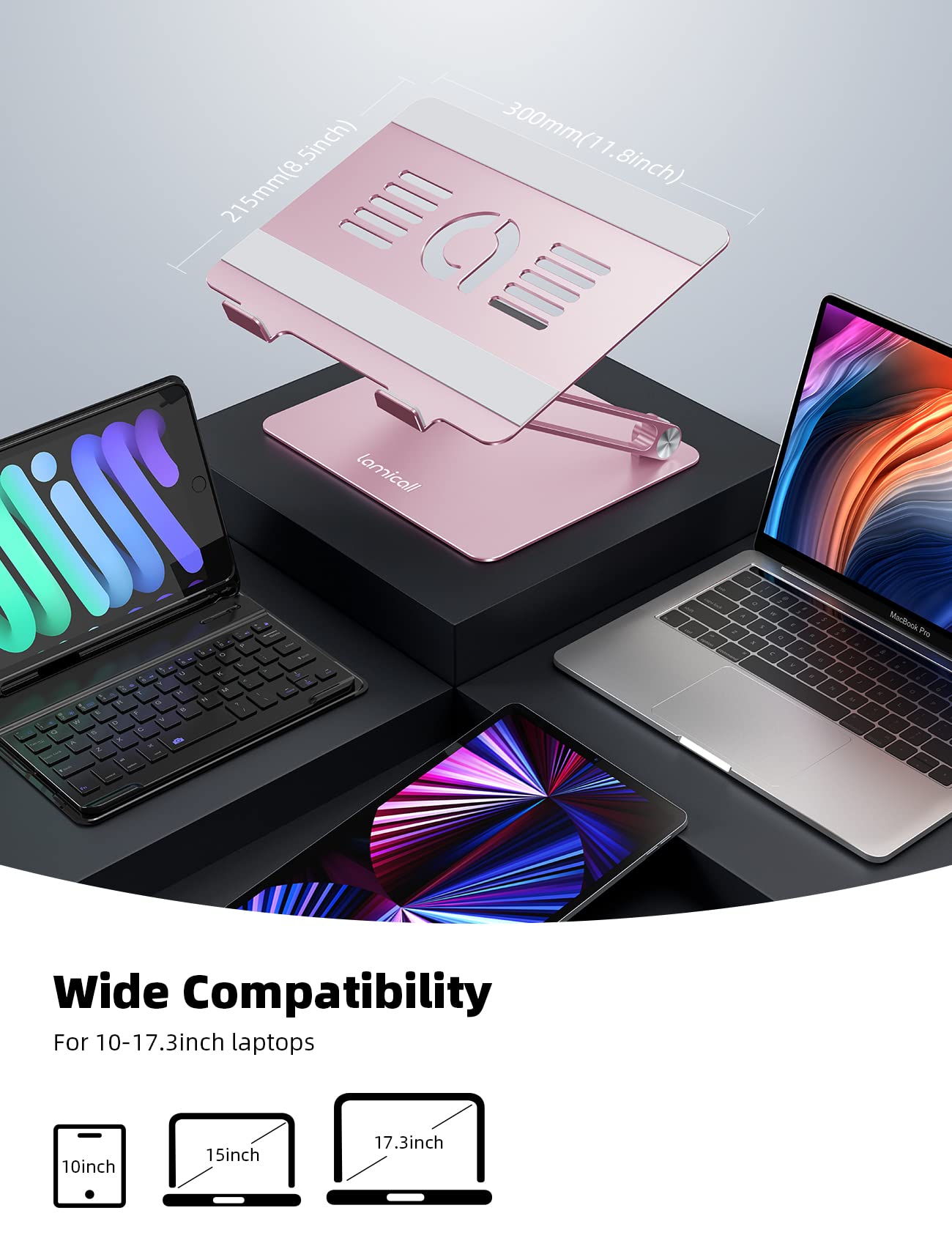 Wide Compatibility: The laptop stand for desk is compatible with all laptops from 10" up to 17.3", including popular models like MacBook, MacBook Air, MacBook Pro, Surface Laptop, Dell XPS, Google Pixelbook, HP, ASUS, Acer, Chromebook, Alienware, etc.