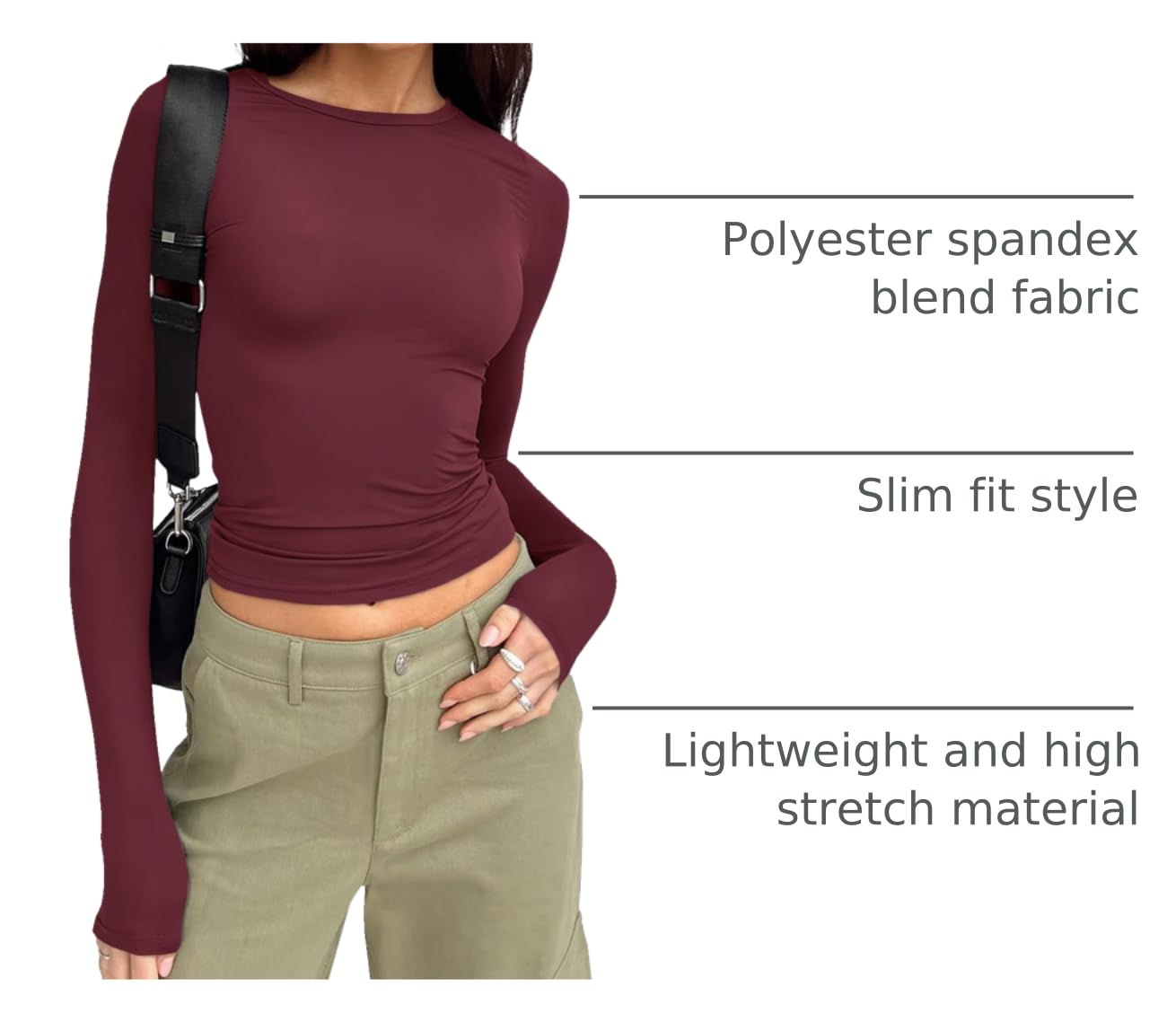 Design: Cropped and stretch fitted style,crew neck, tight underscrubs layer,you can wear it regularly or fold it up like a crop top,cute,slim fit,casual y2k style fashion