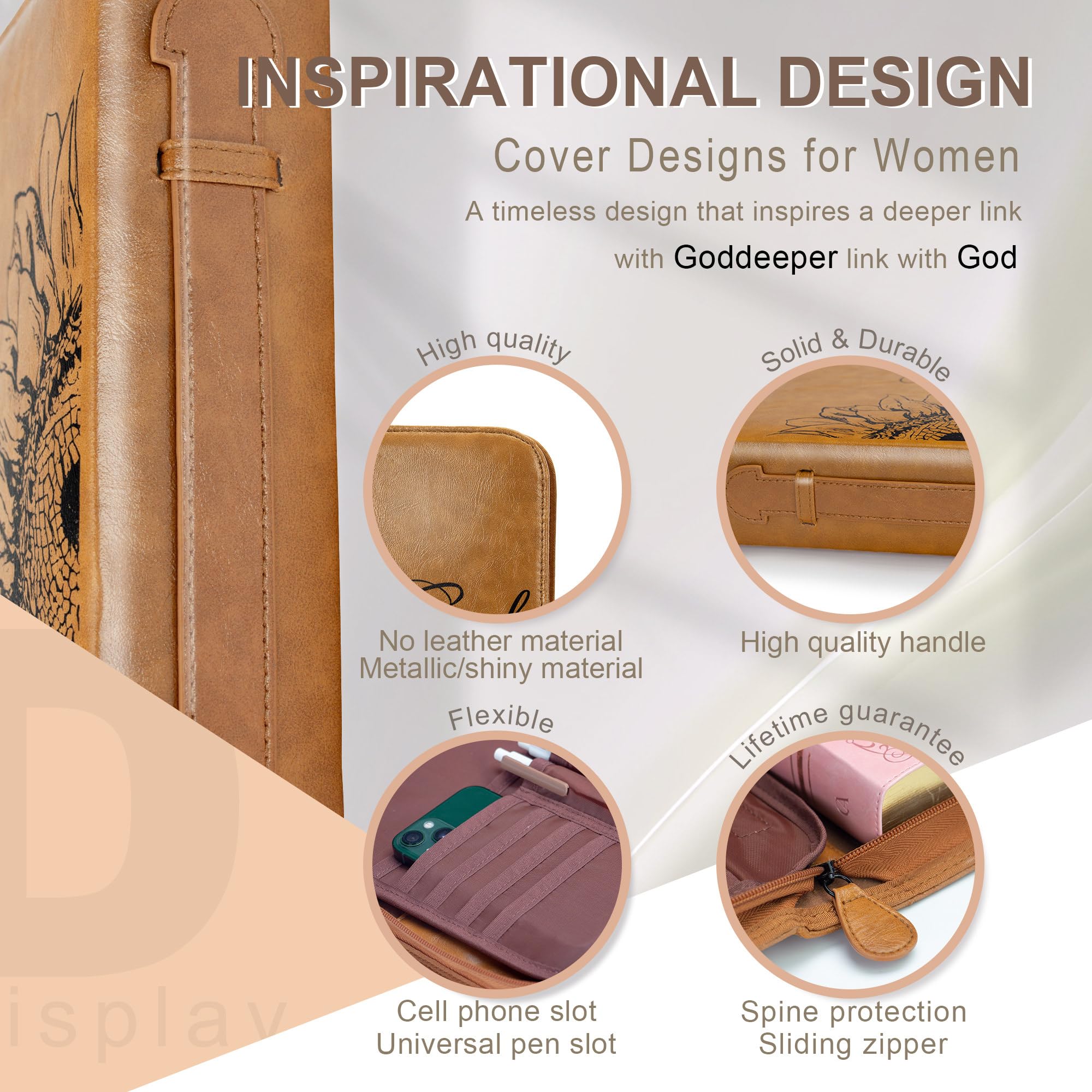 Designed for women- The bible cover can hold the standard size bible and keeps your bible safe and clean.