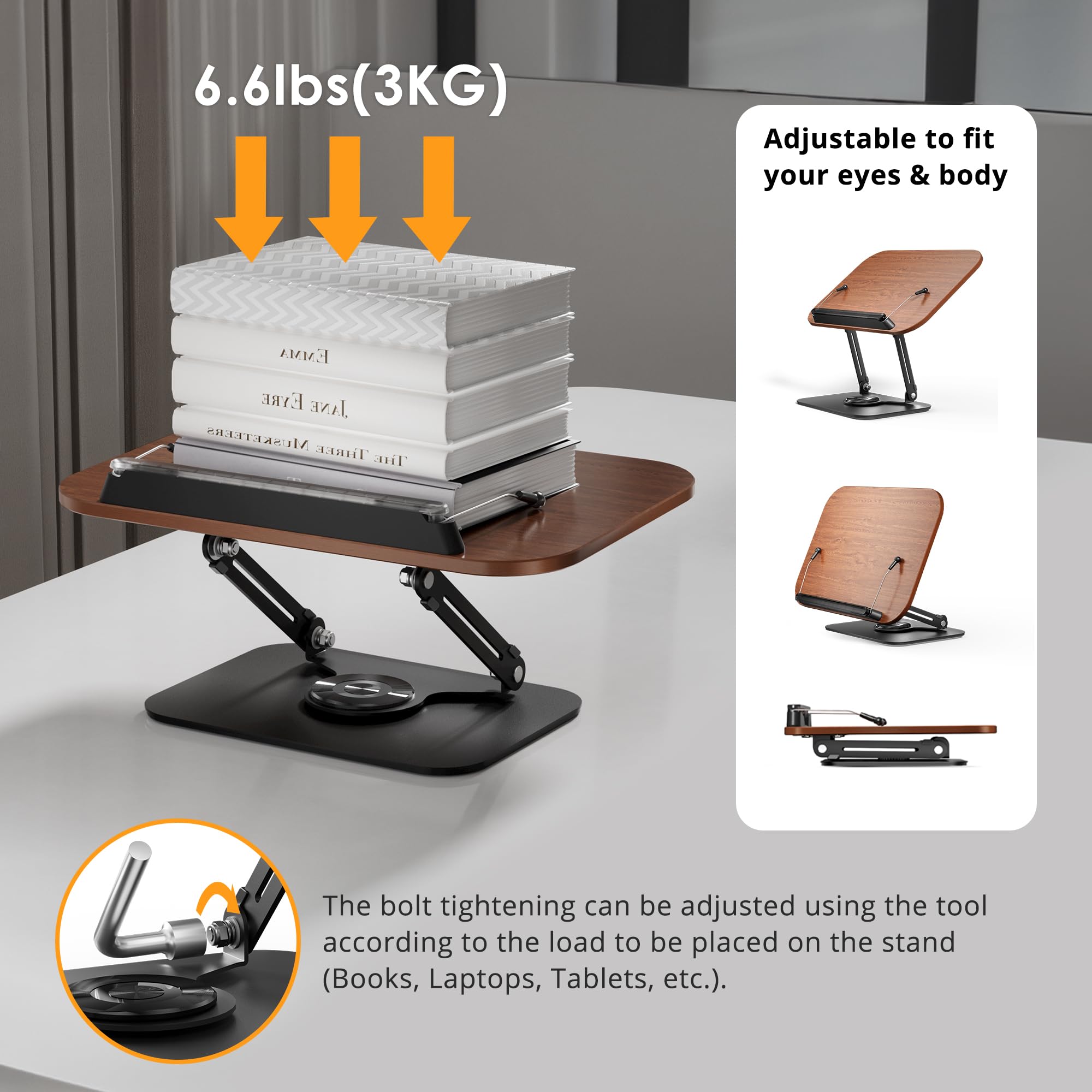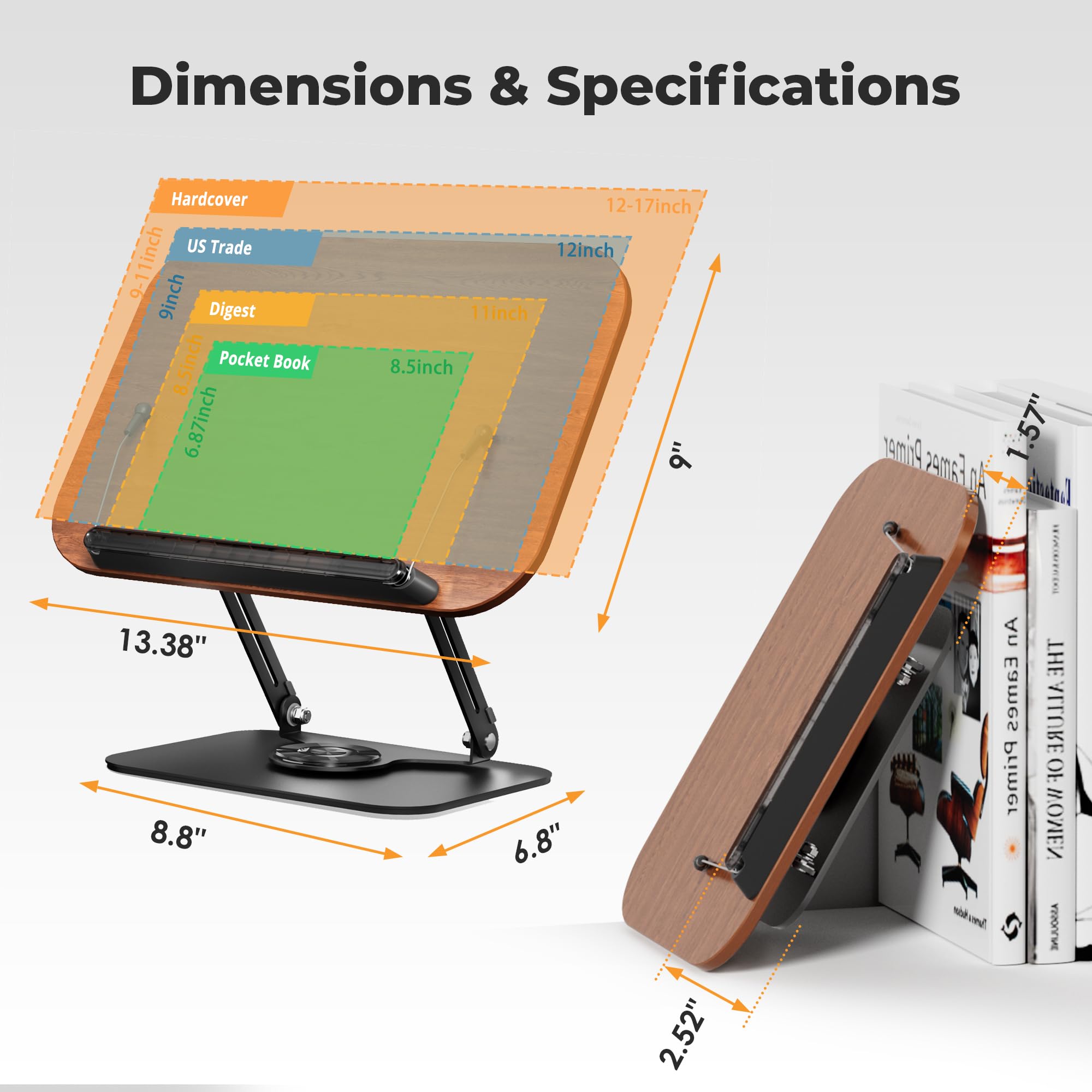 【Premium Materials】Constructed from robust wood and aluminum, non-wobble design, our book stand serves as more than just a book holder. It also functions as a rotating display stand and a paper holder for typing. The secure page clips ensure your books and pages remain in place. Ideal for aficionados of recipe books and textbooks alike, this versatile stand enhances both functionality and durability
