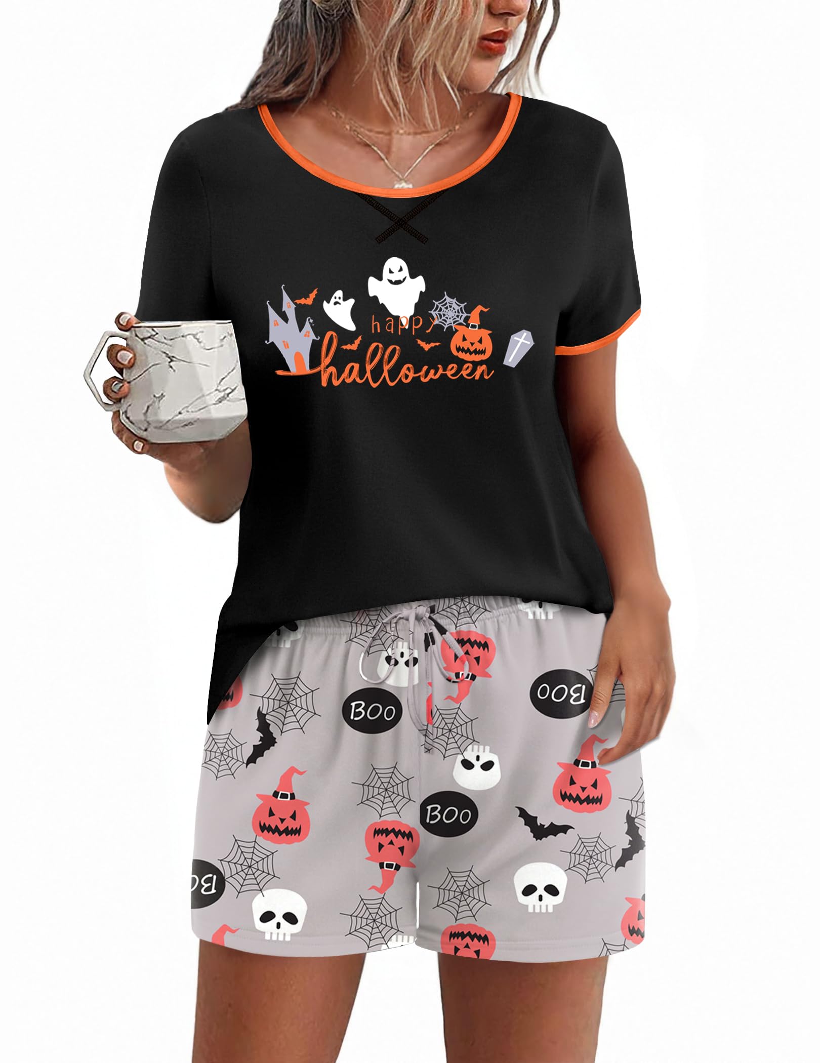 Two Piece Pajama Set: Top- with Round-neck,short sleeve,stylish color block, Pj Short- with Elastic waist,classic plaid & print,which suitable for every age group. Nice design Short Pajama Set for a relaxing day and night