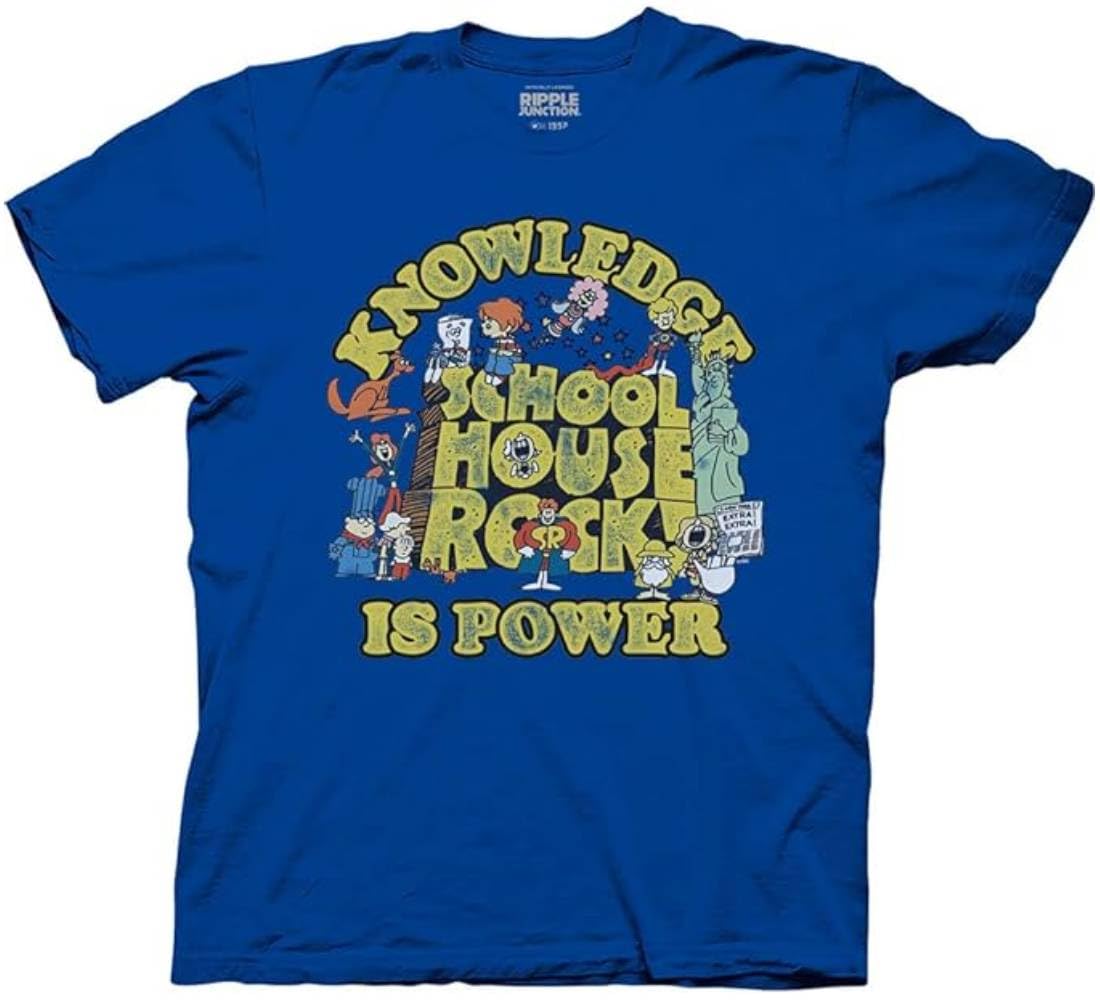 ☑ AS REAL TODAY AS IT WAS IN 1973: 100% Officially licensed apparel by Schoolhouse Rock! This authentic KNOWLEDGE IS POWER adorned Schoolhouse Rock! logo graphic printed tee was designed in-house and manufactured to meet the high creative and quality standards required to receive the exclusive seal of approval for officially licensed products bearing the Schoolhouse Rock! name.