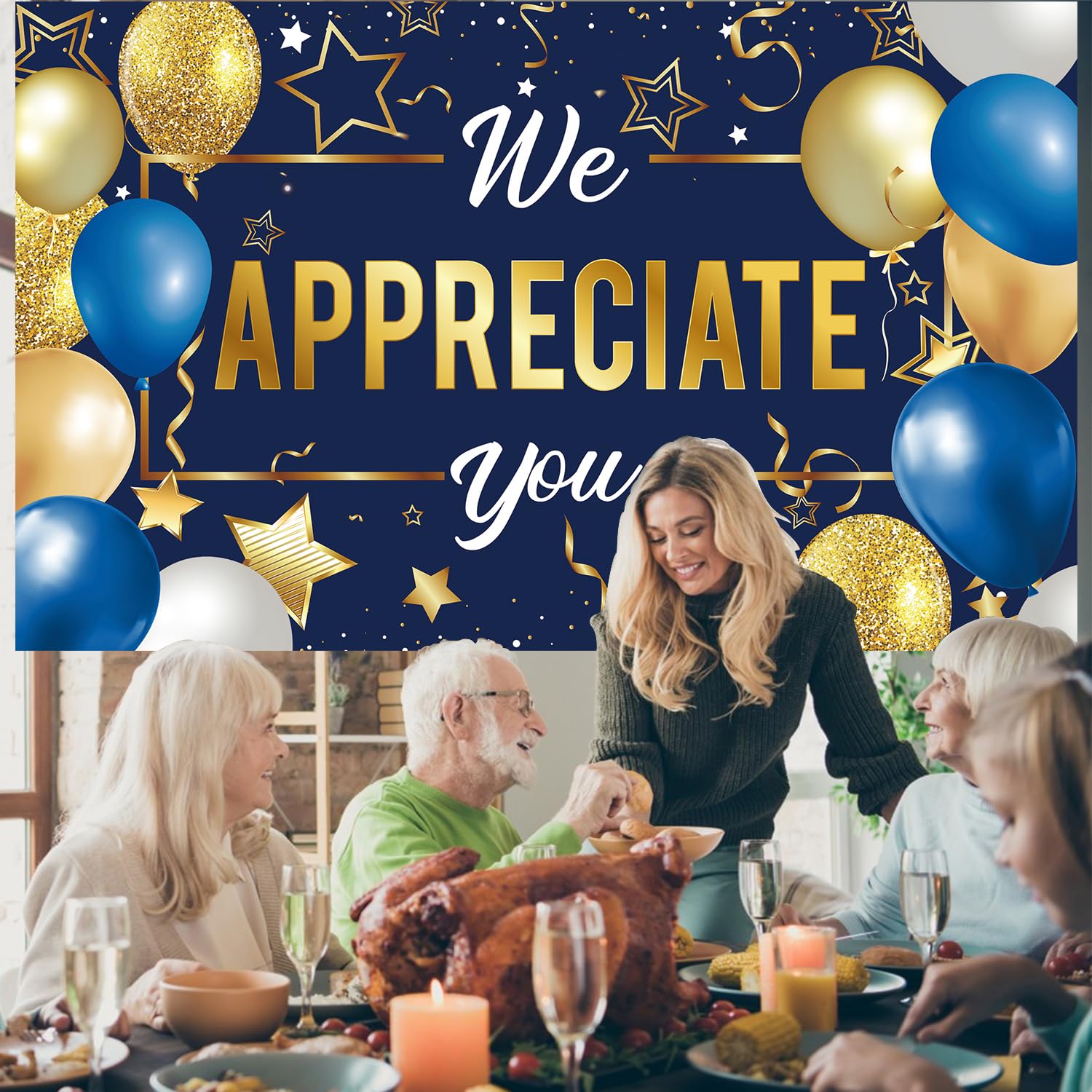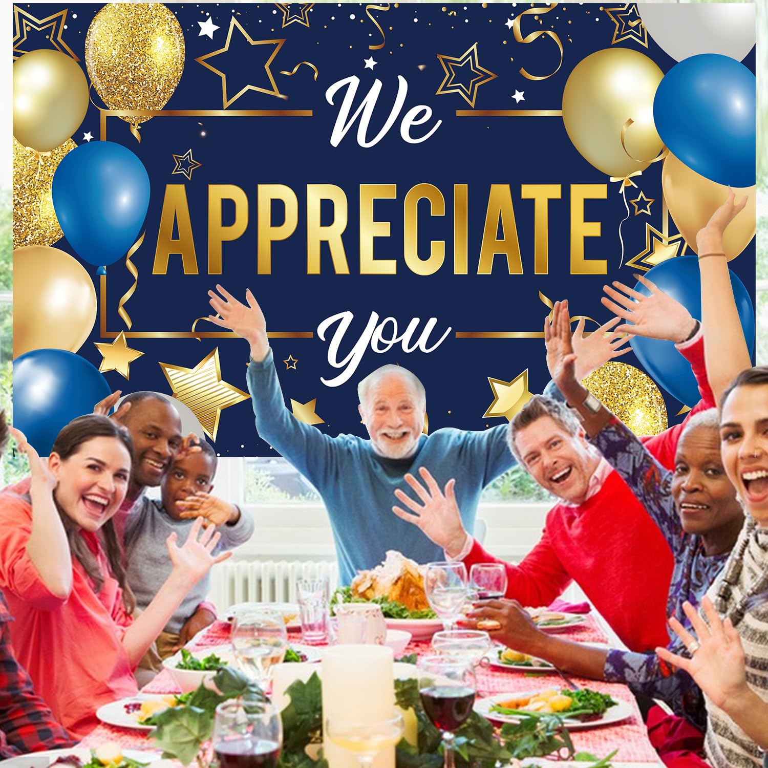 Appreciation backdrop: perfect for appreciation party, indoor, outdoor thanks theme party decorations, home party, office party, Employee Veterans Teacher Doctor Nurse Staff appreciation partydecoration,Thanksgiving decorations,etc. It's also an ideal gift for home or friends