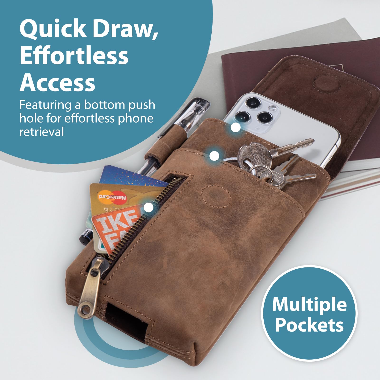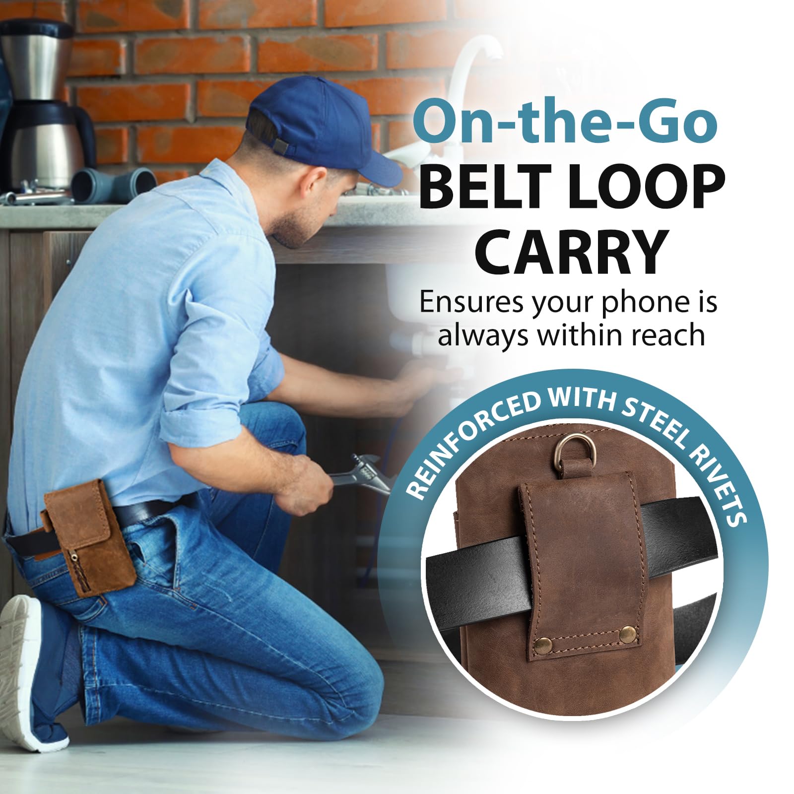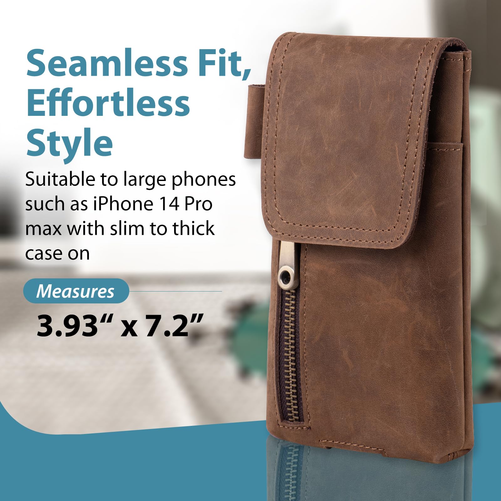 Compact and Spacious Design: Measures approx. 3.93 x 1 x 7.2 inches, The leather phone holster has more than enough room for large size phones (up to 6.6 inches) with case on. Compatible with iPhone 16 Pro Max 16 Plus 15 Pro Max 14 Pro Max 13 Pro Max 12 Pro Max Samsung Galaxy A14 A54 S25 Ultra S25+ S24 Ultra S24+ S23 Ultra S23+ Note 20 Ultra etc