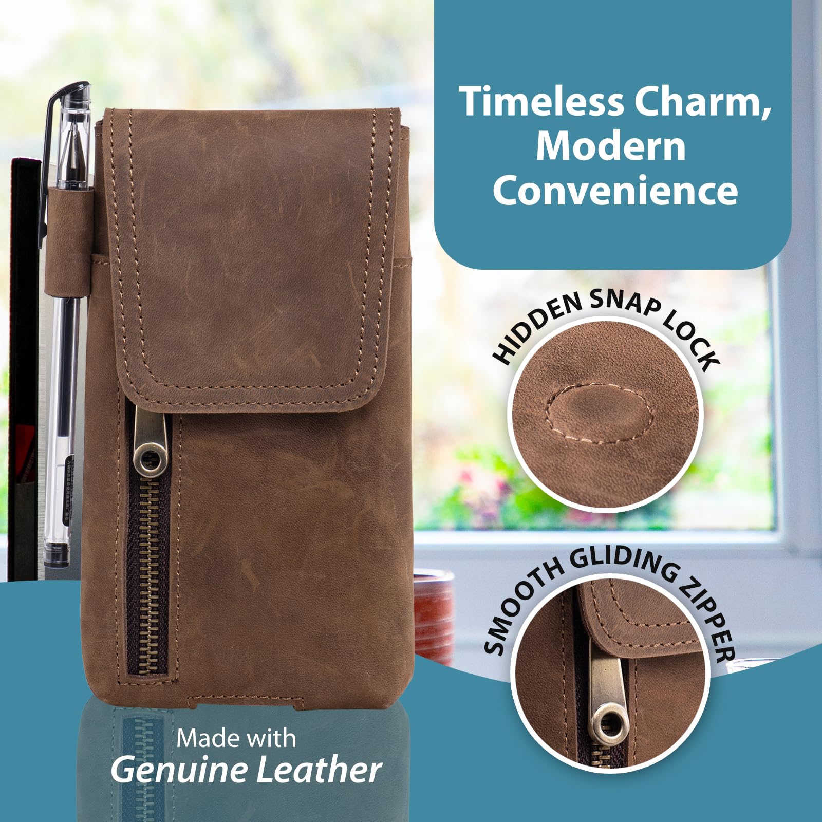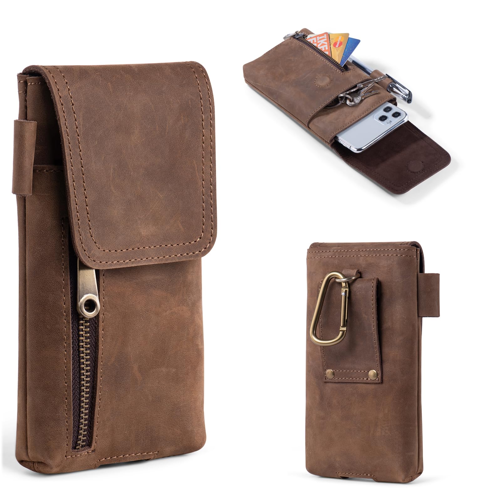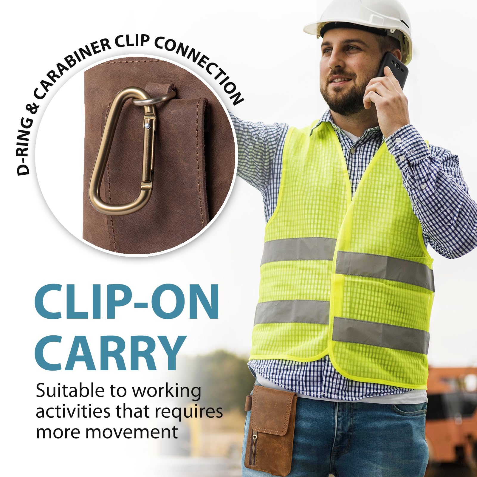 Compact and Spacious Design: Measures approx. 3.93 x 1 x 7.2 inches, The leather phone holster has more than enough room for large size phones (up to 6.6 inches) with case on. Compatible with iPhone 16 Pro Max 16 Plus 15 Pro Max 14 Pro Max 13 Pro Max 12 Pro Max Samsung Galaxy A14 A54 S25 Ultra S25+ S24 Ultra S24+ S23 Ultra S23+ Note 20 Ultra etc