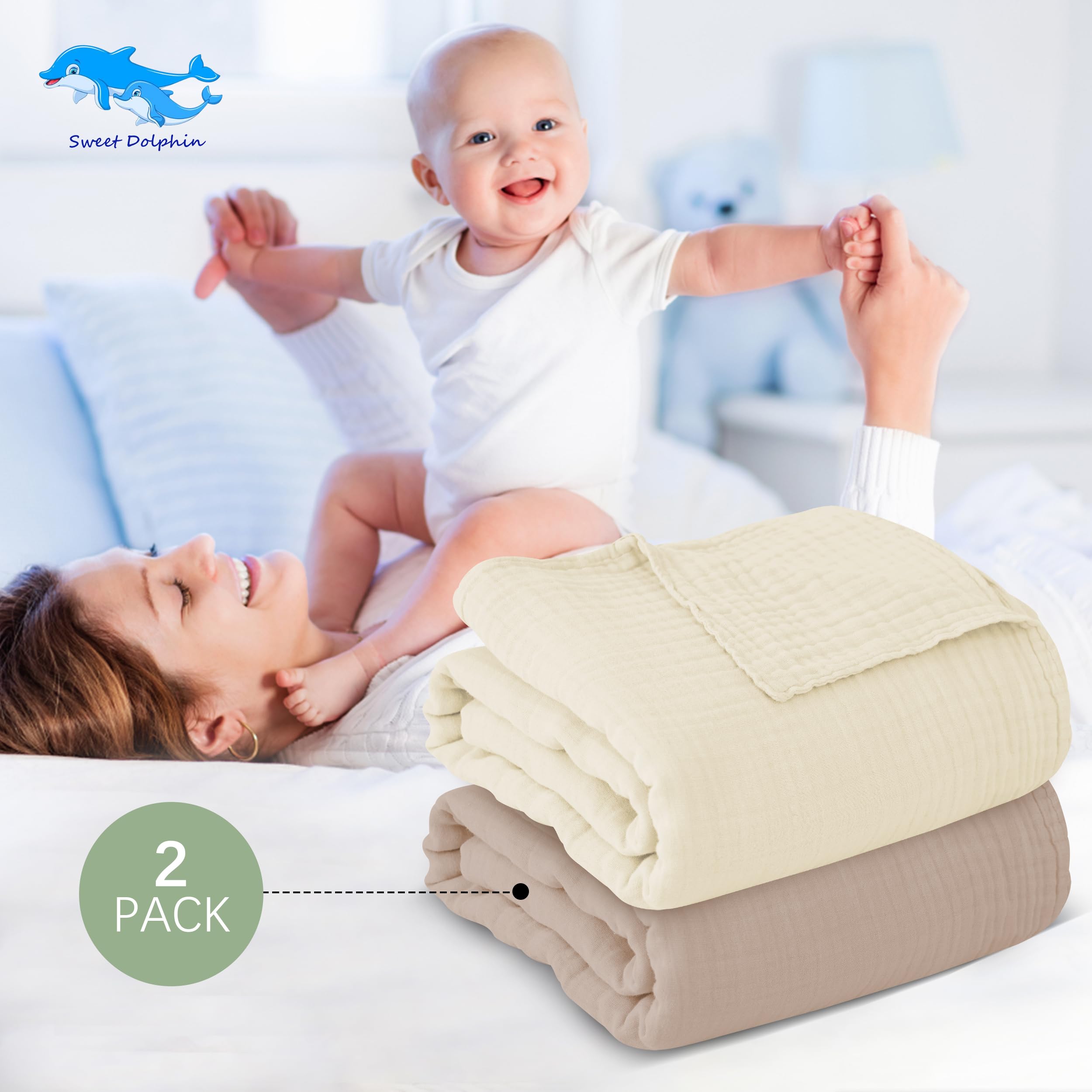 SWEET DOLPHIN 2 Pack Muslin Hooded Baby Towels, 40x40 Inch, Ivory and Brown
