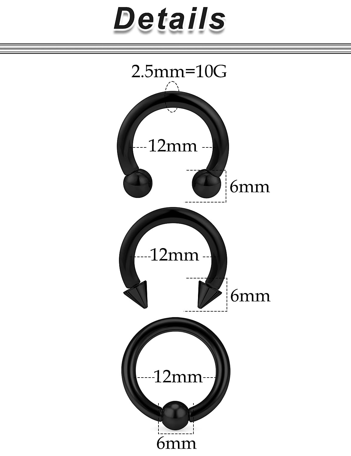One Order Included 6 PCS Septum Rings Have 3 Styles, 1 Pairs Spike Horseshoes Septum Rings,1 Pairs Balls Horseshoes Septum Rings,1 Pairs Captive Bead Septum Rings,Economical Price with Trendy Design Give You a Colorful Day.