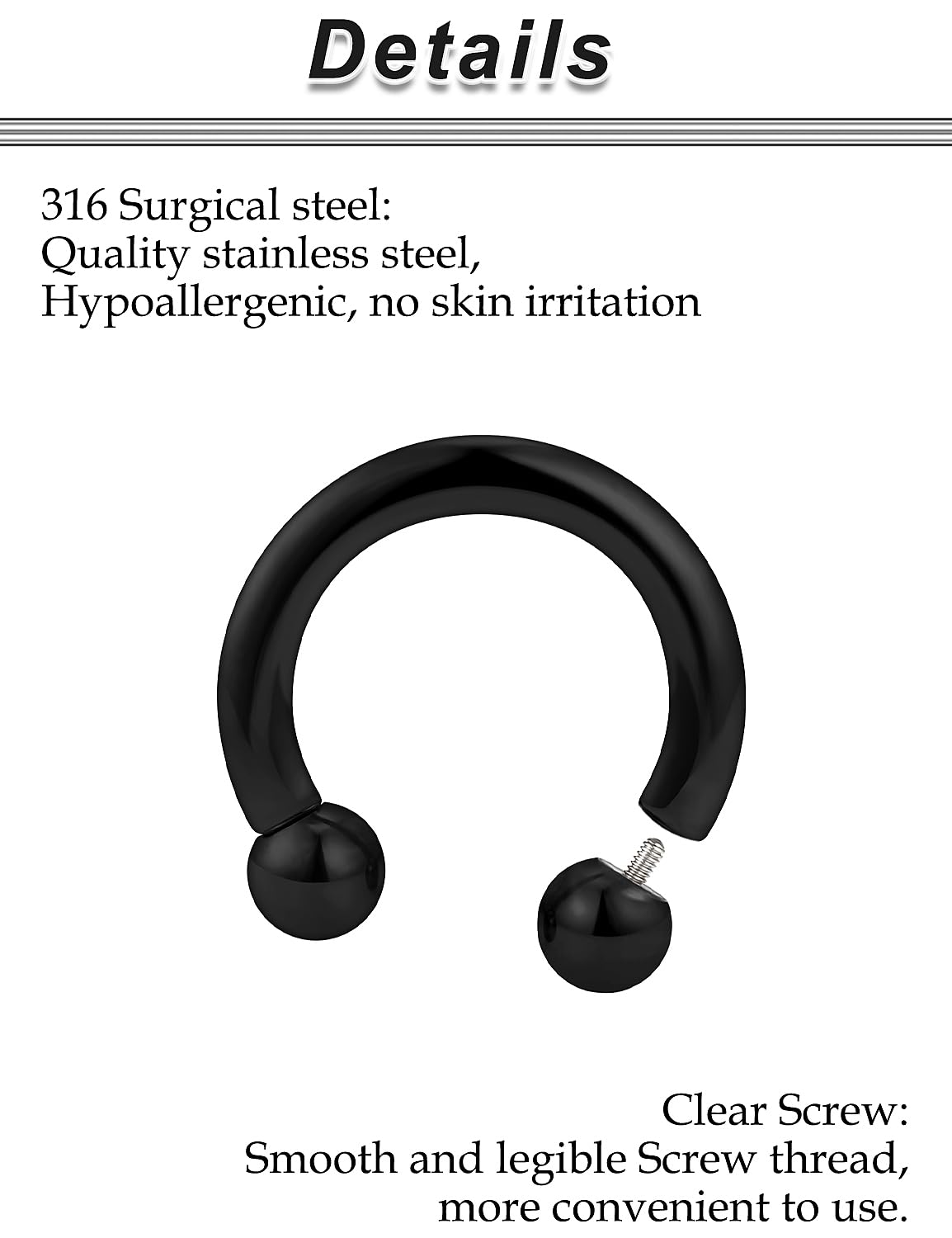 Description Ocptiy 2G 4G 6G 8G 10G 12G 14G 16G Septum Rings Silver Black Surgical Steel Heavy Gauges Earrings stretching kit Eyebrow Lip Septm Nose Ring Helix Tragus Daith Rook Earrings Hoop 10mm 12mm 16mm