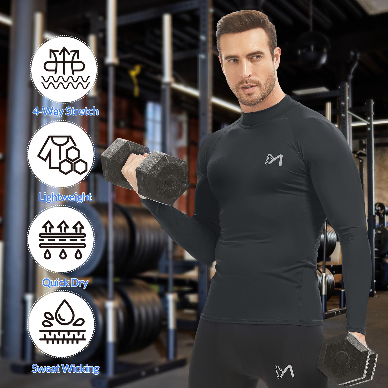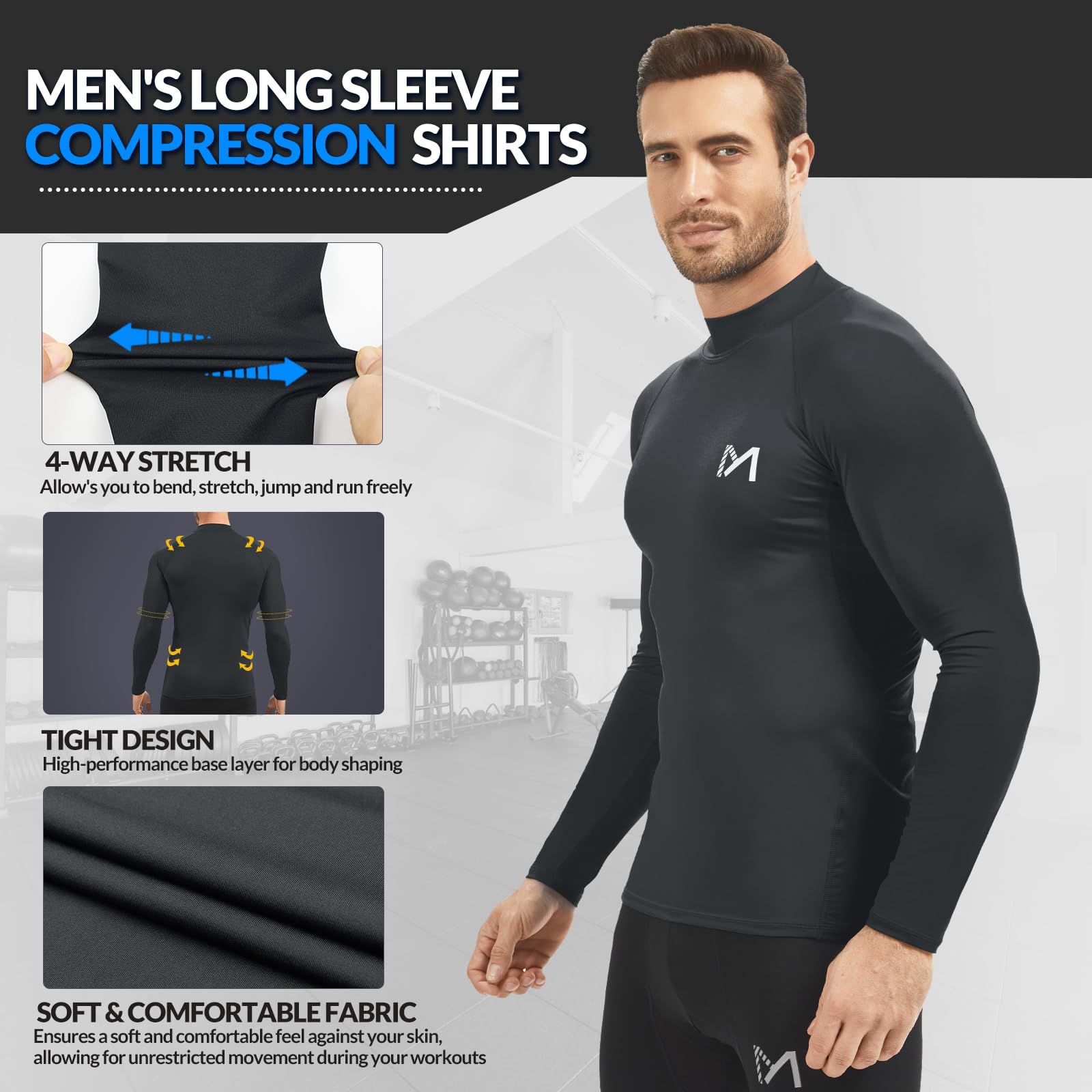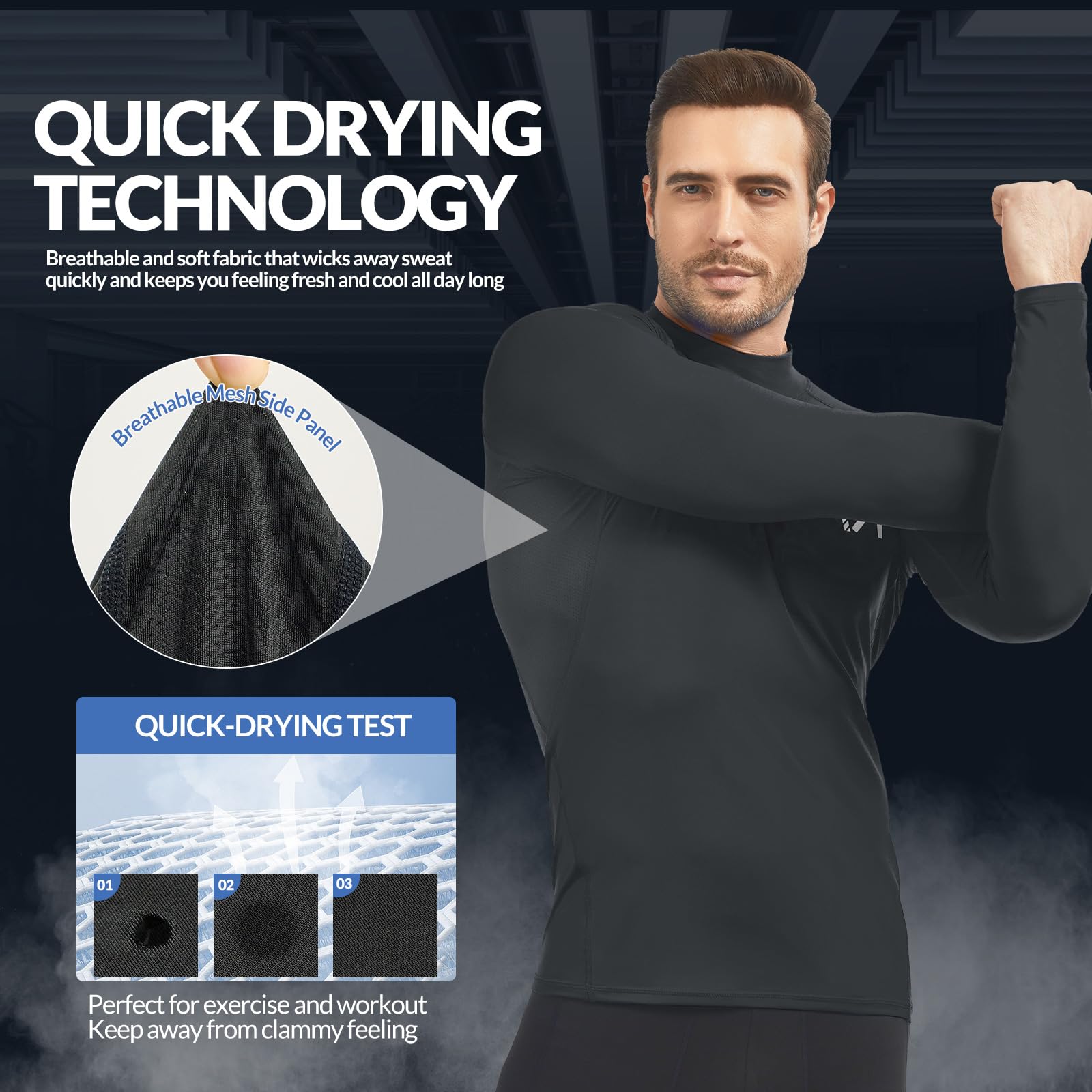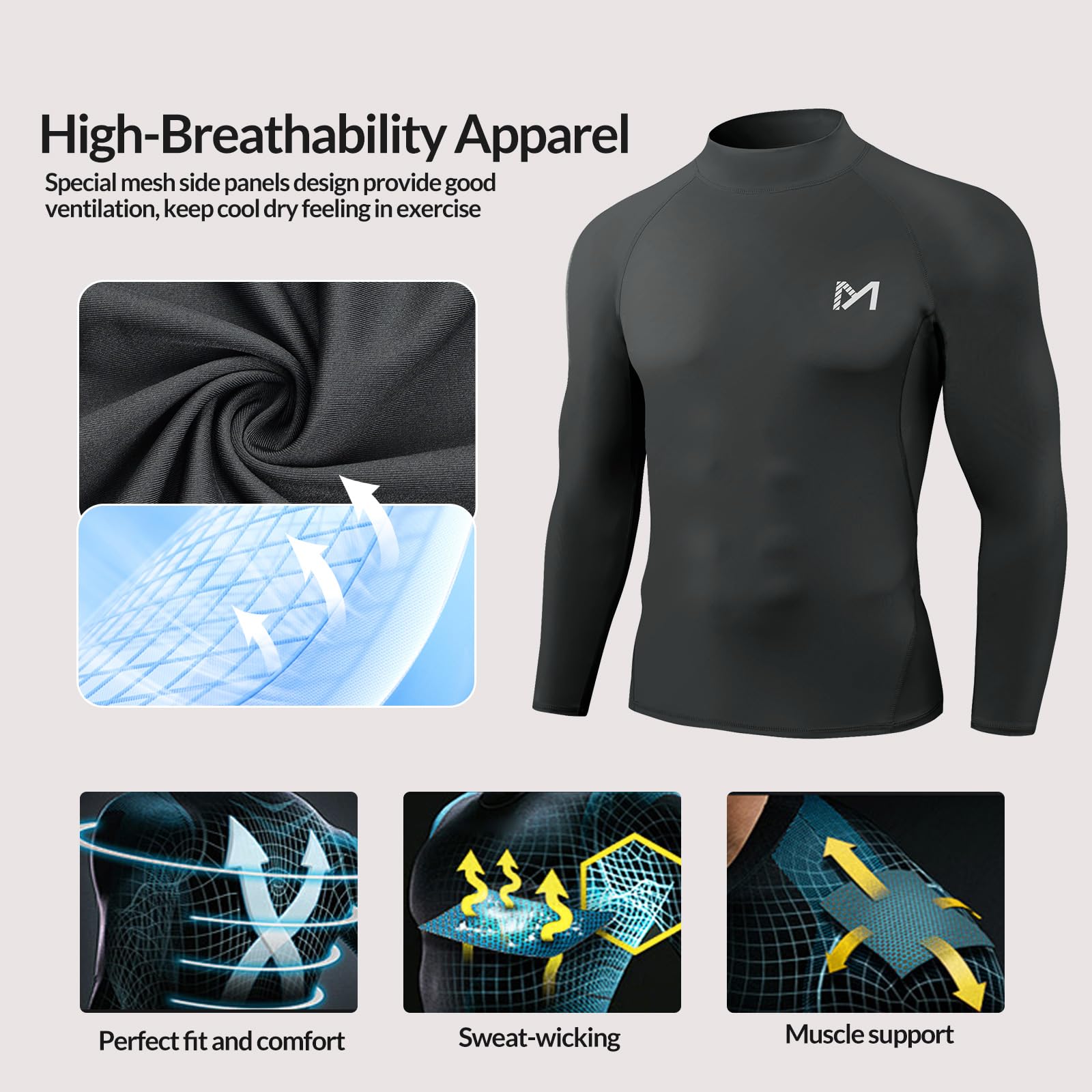 [Instantly Absorbing Sweat In Exercise] The men’s hight neck long sleeve is made of moisture wicking and breathable fabric, which will absorb sweat and dry quickly, keep away from clammy feeling and help regulate body temperature in exercise. The long sleeves underwear clothes will provide a enough comfort when you play outdoor sports and gym exercise