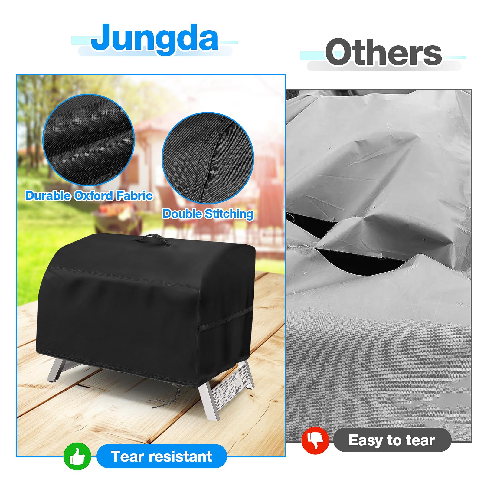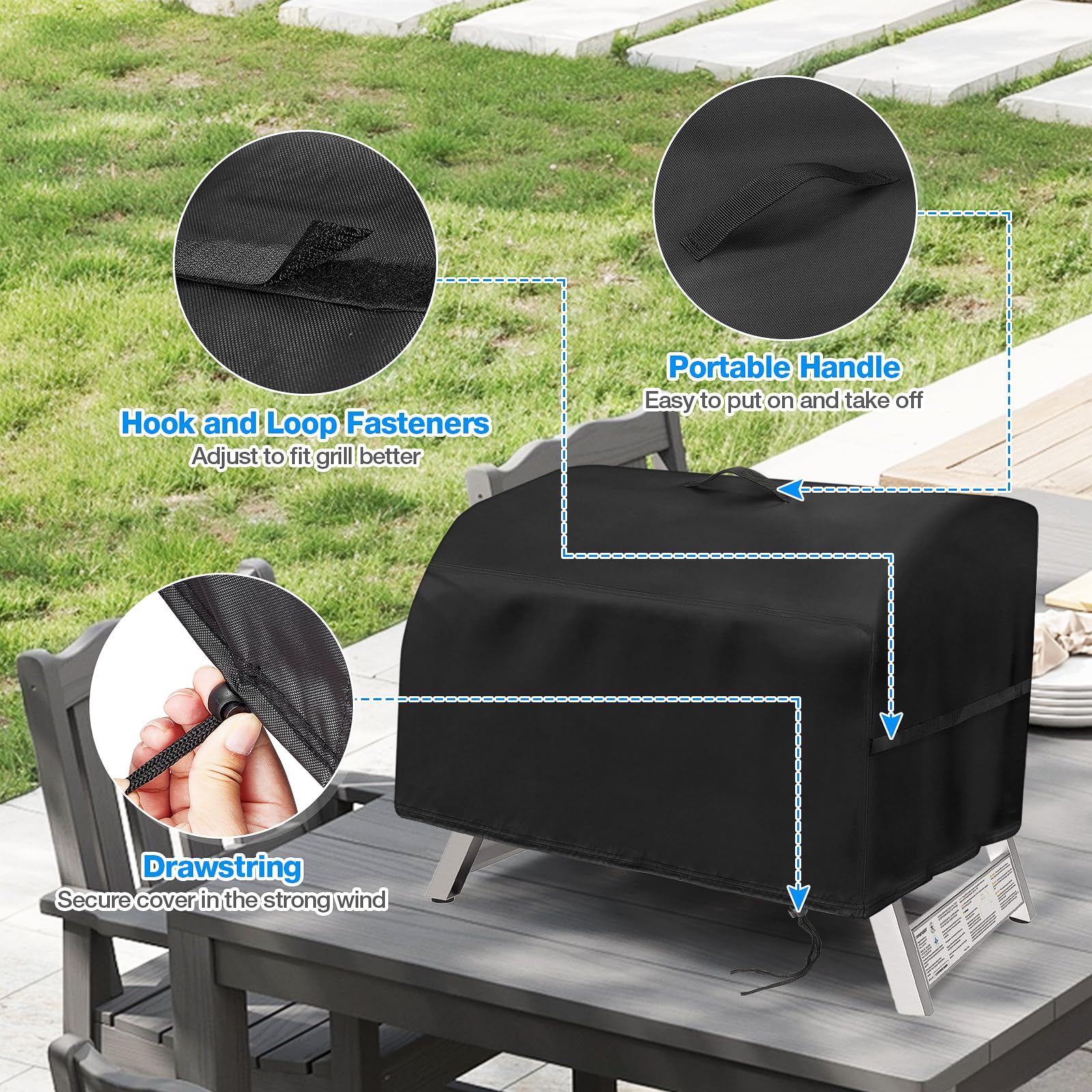 Windproof Design: There is a drawstring at the bottom of the cover that can be tightened to make the cover fit the grill more tightly and prevent the cover from being blown away by strong winds