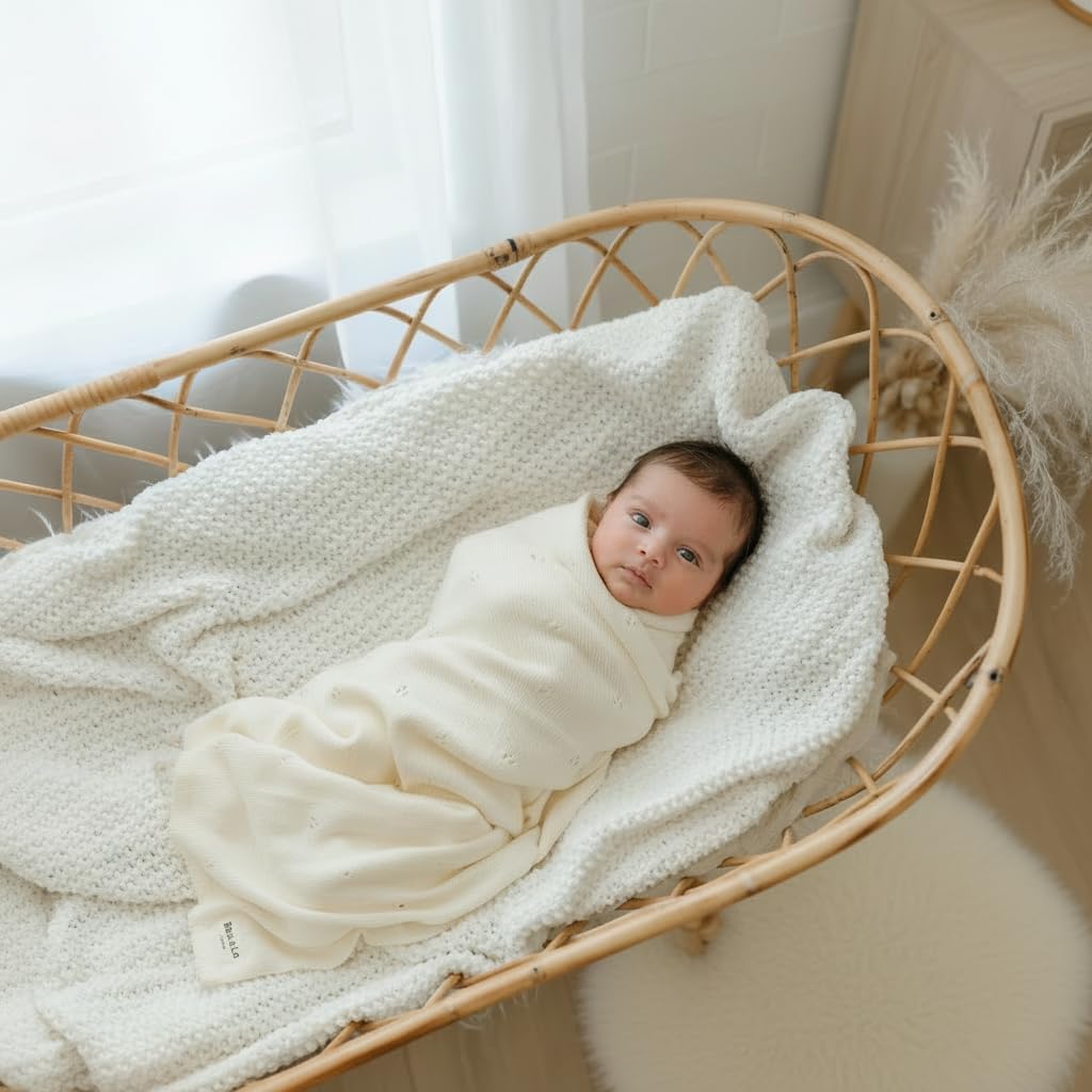 Perfect for Gifting: Our cotton knit blanket comes beautifully wrapped with our monogrammed ribbon, making it an exquisite choice for bebe registry, showers or a holiday gift. It's a thoughtful and practical present that every mom will appreciate.