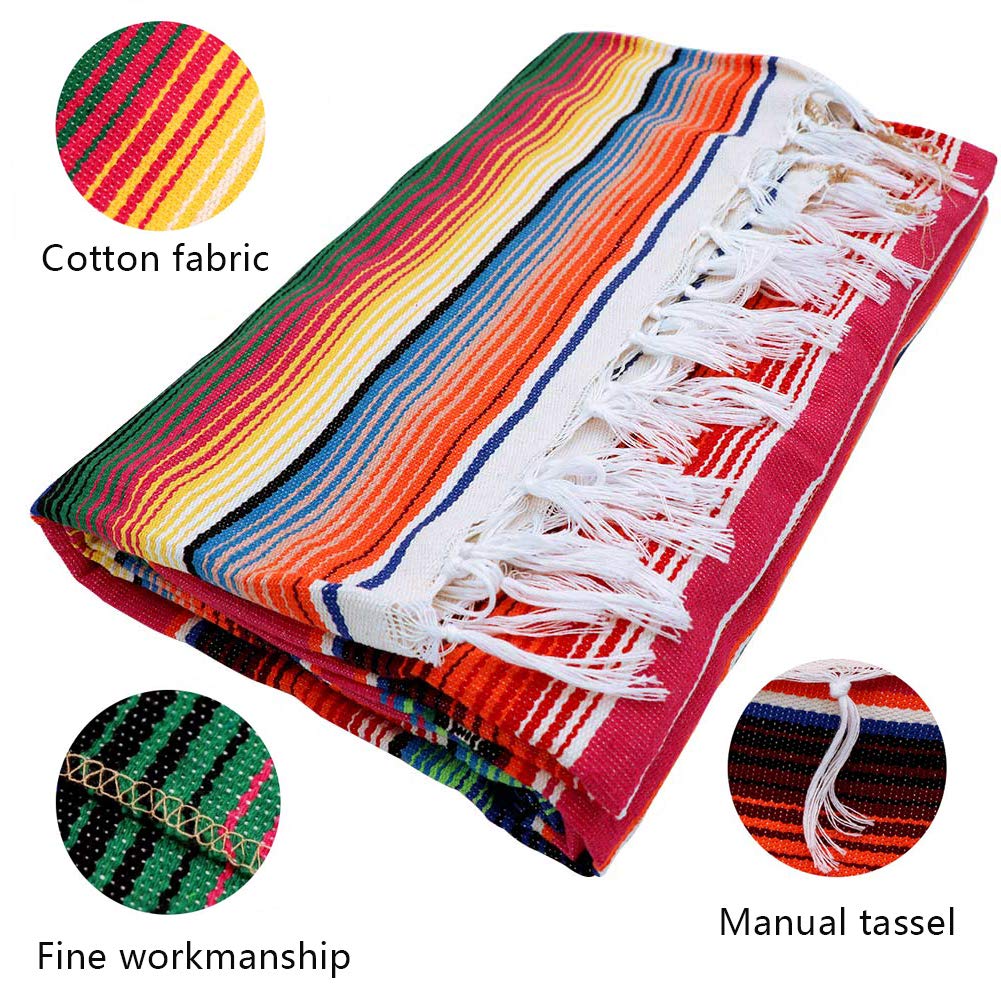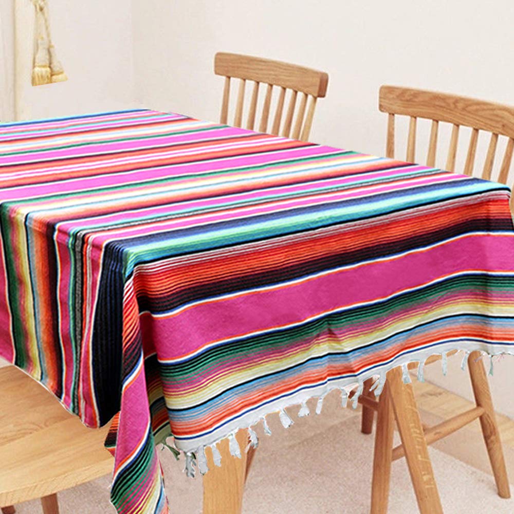 HIGH QUALITY: Mexican serape tablecloth is hand made, made of high quality durable cotton, easy to clean, stain resistant. It is sewn on all four sides, not easily loose thread.