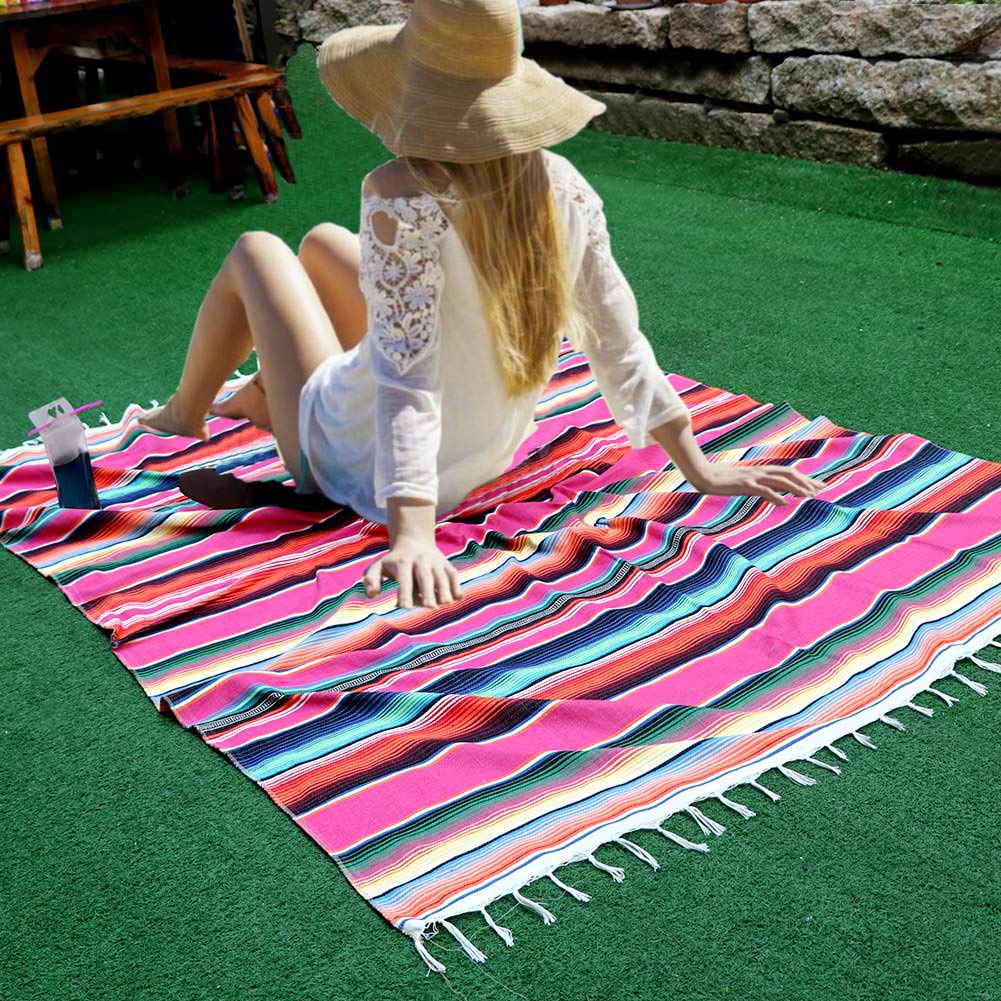 MULTI-FUNCTION: Mexican tablecloth suitable for table cloth, picnic rugs, blanket, shawls, wall decoration, coffee table and just anything you must cover.