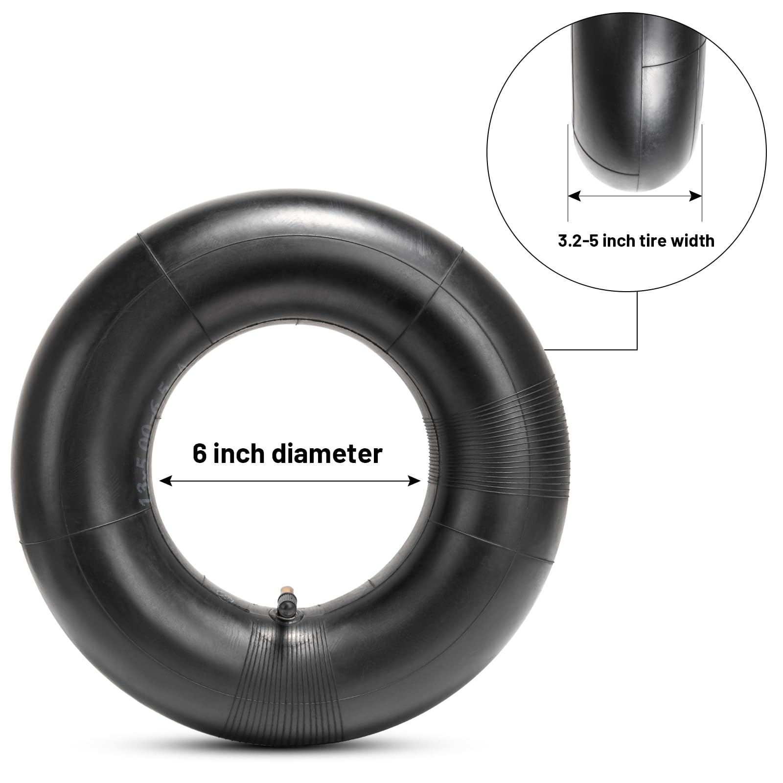 Better Air Tightness: Heavy-Duty 13X5.00-6 inner tube made from butyl rubber, fitted with TR87 Bent Valve Stem, 1.38'' long with maximum inflation of 60 psi, offer excellent sealing and air retention