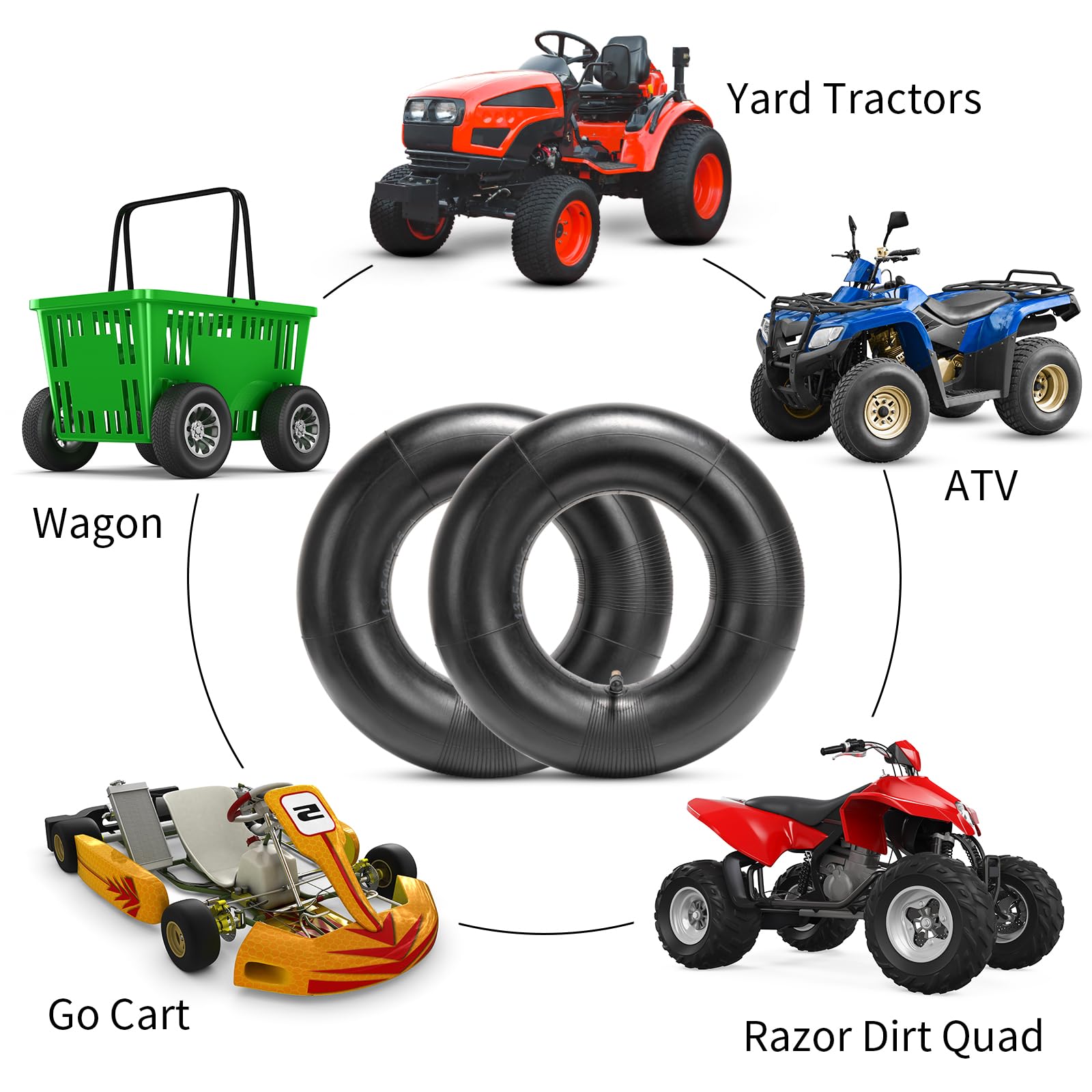 Wide Compatibility: These heavy duty 13x5.00-6 tire tube are exact replacements for Razor Part Number W25143060078 for Razor Dirt Quad Versions 1 to 18. In addition, 13 X 5.00-6" inner tube also fits for Go Kart,Lawn Mower,Golf Cart,Yard Tractors,Hand Trucks,John Deere Lawn Mower, Snowthrowers, Tillers, Trailers, Wheelbarrows and ATV's,Tractor,throwers and more