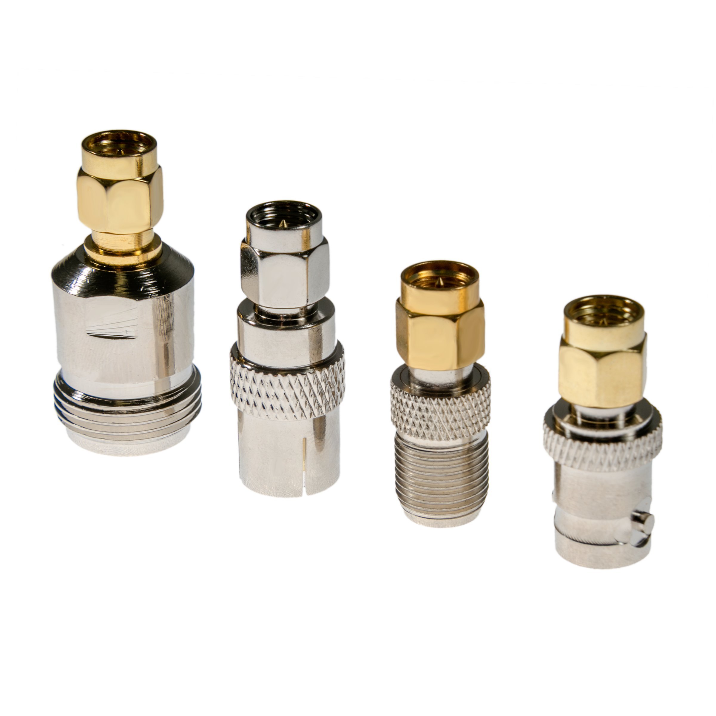 The included adapters will allow you to connect a wide range of RF accessories to your HackRF One, including F-connector, N-connector, BNC and PAL antennas