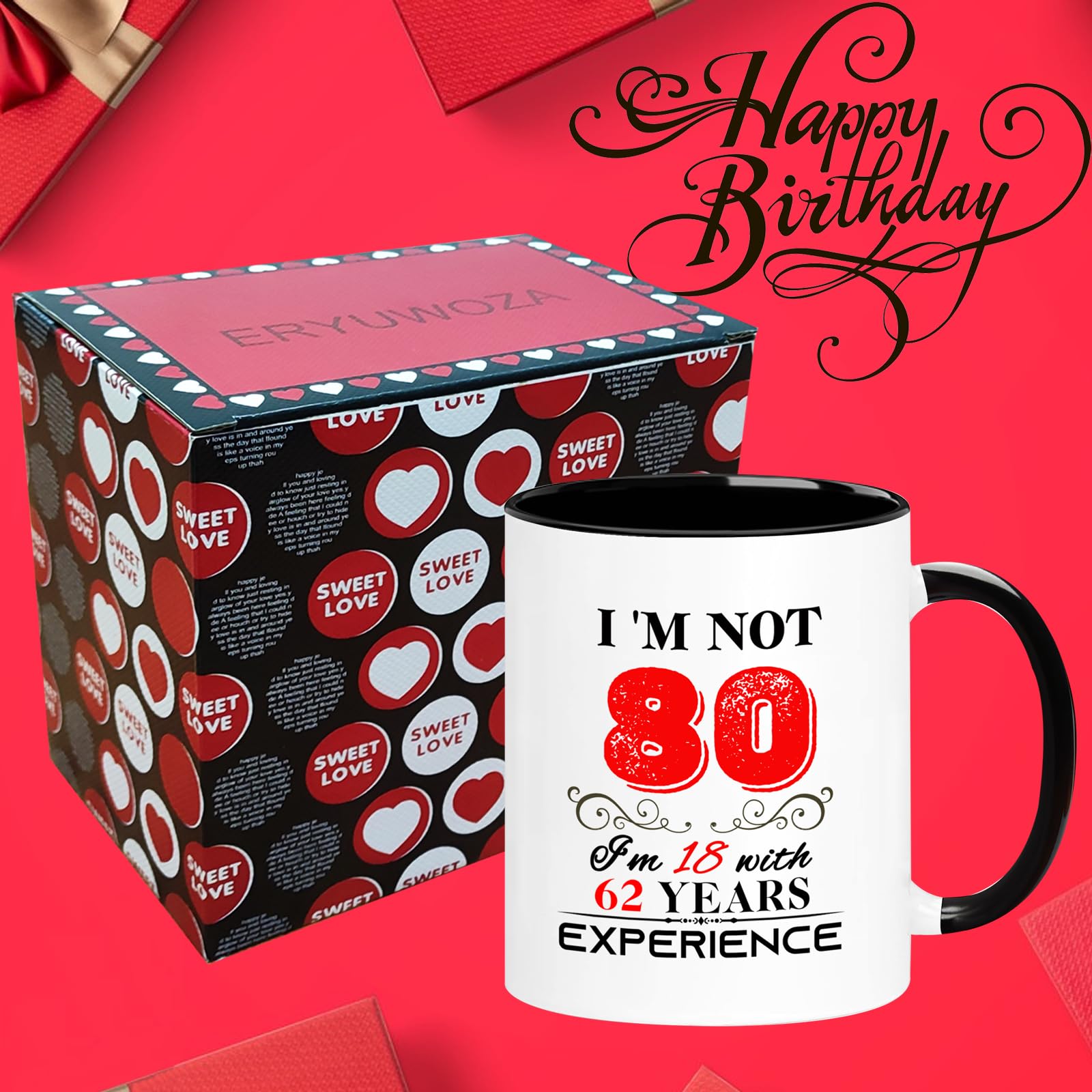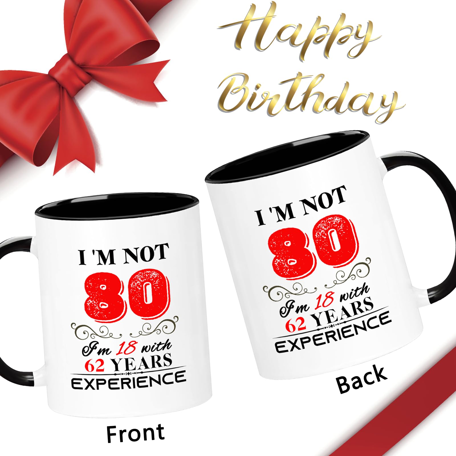【Birthday Gift】: This funny "I'm not 80, I'm 18 with 62 years experience" Mug is the perfect birthday gift for a 80 year women men! Give it to your mom, dad, papa, mama, brother, sister, husband, wife, aunt, uncle, cousin, son, daughter, boss, coworkers, bestie, grandpa, grandma, or your best friend for her he birthday.