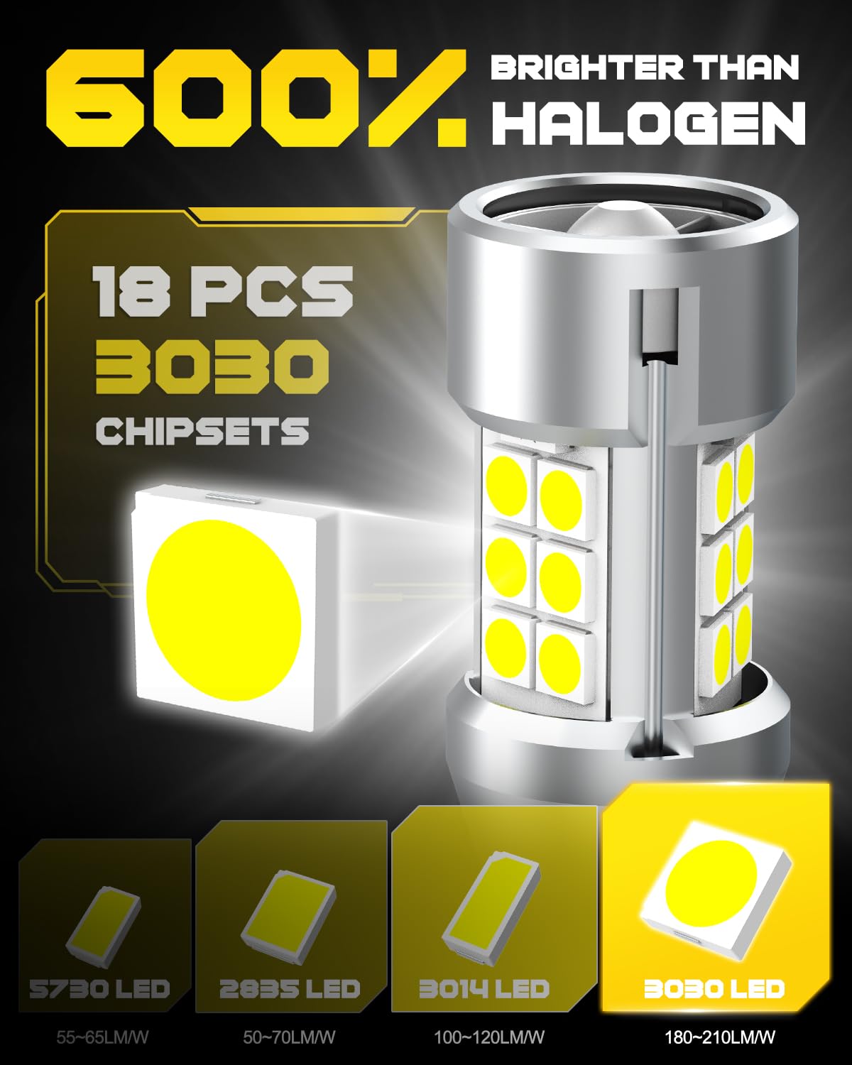 600% Brighter: AUXITO upgraded 921 led bulb uses 18pcs high quality 3030 led chipsets to produce a super bright light, improving your visibility Up to 6 times. Allows you to see more clearly while reversing at night. Only for BACKUP LIGHTS/REVERSE Turn Signal parking LIGHTS.