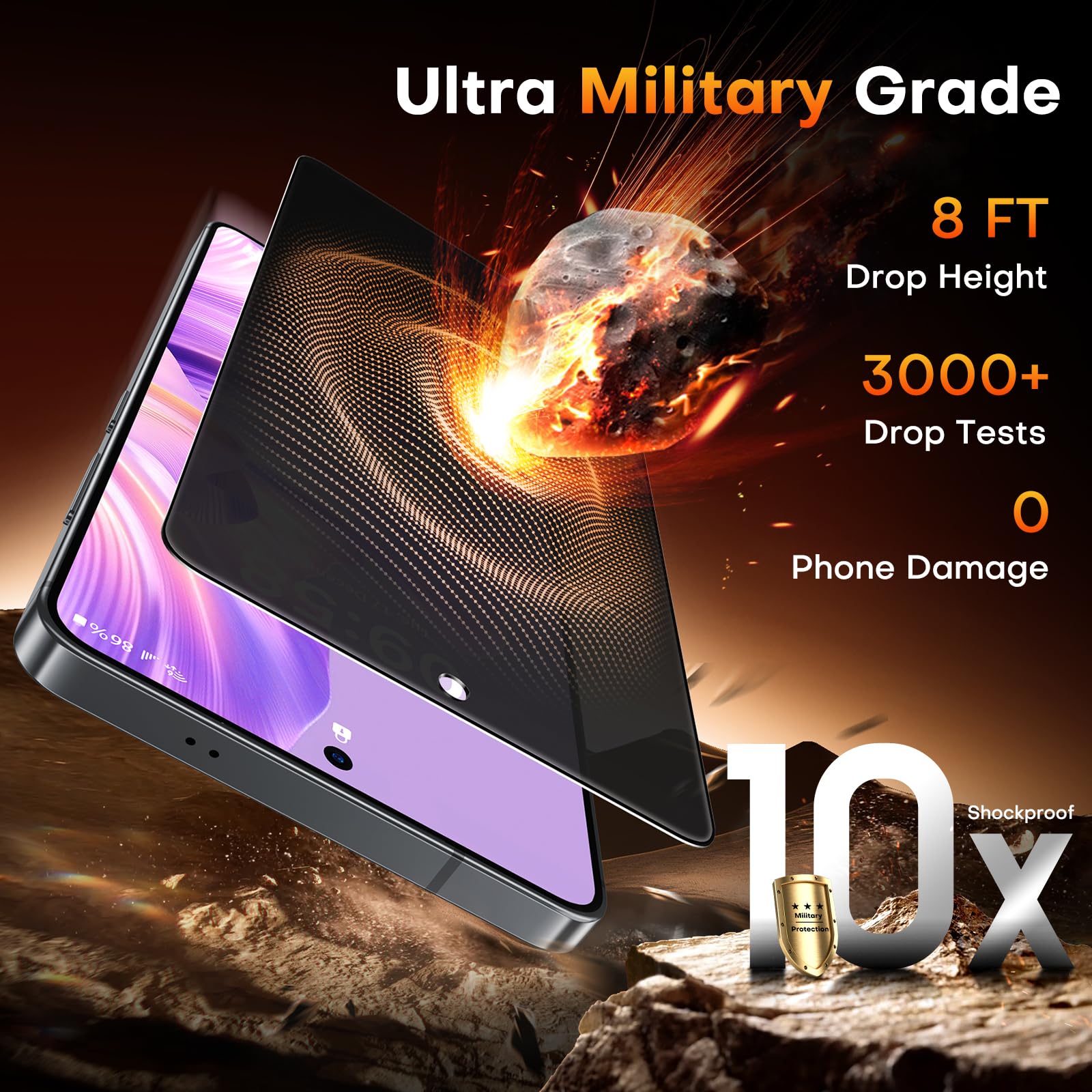 Military-Grade Drop Protection:Proudly boasting the most advanced triple ion exchange technology, this for Galaxy S26 privacy screen protector has a hardness level far exceeding 9H. This ensures that your Phone is fearless against any drops or impacts, providing the highest level of screen protection in any environment
