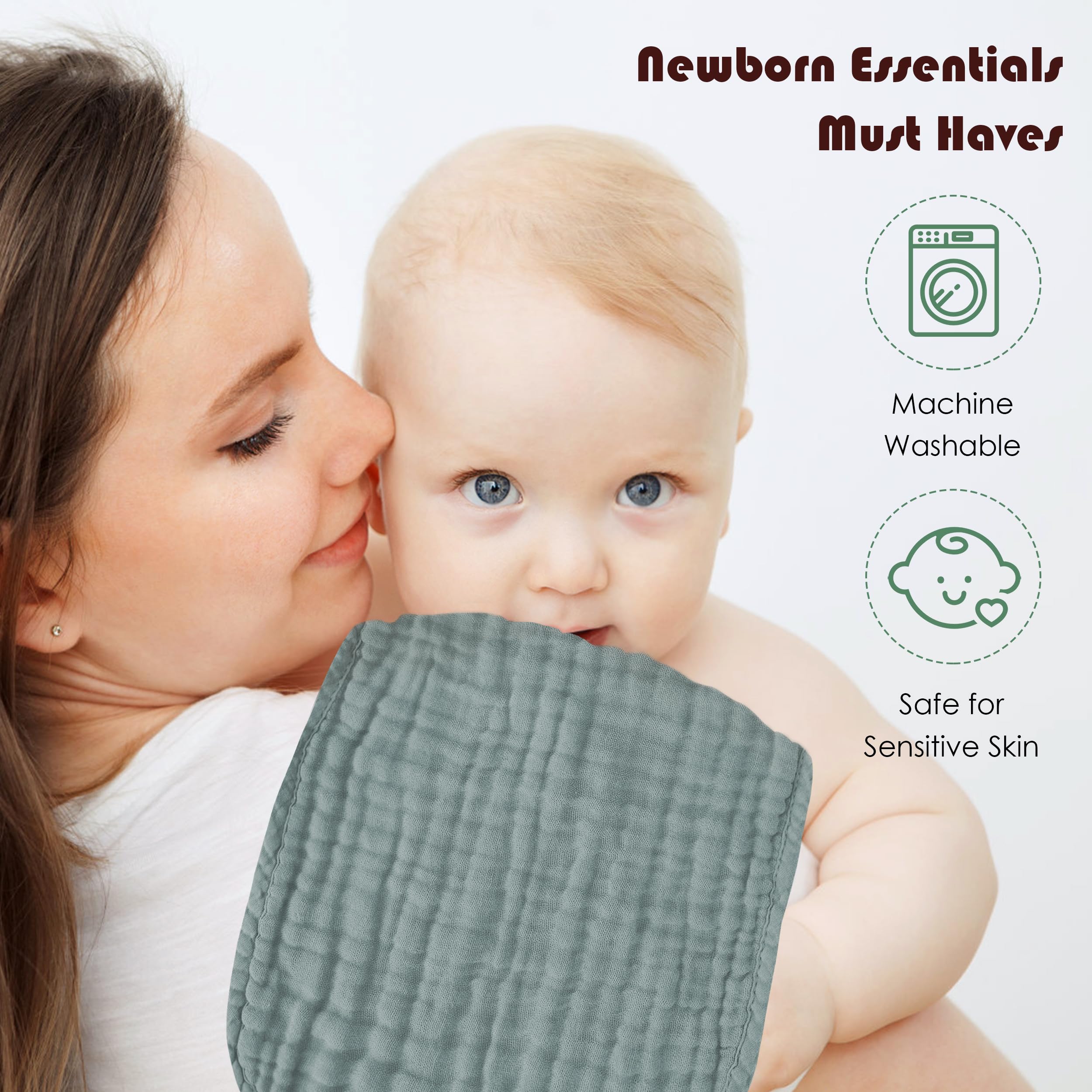 SUPER ABSORBENT: Featuring muslin design, these baby washcloths offer superior softness, breathability, and absorbency. The quick-drying fabric is perfect for keeping baby's skin dry and comfortable.