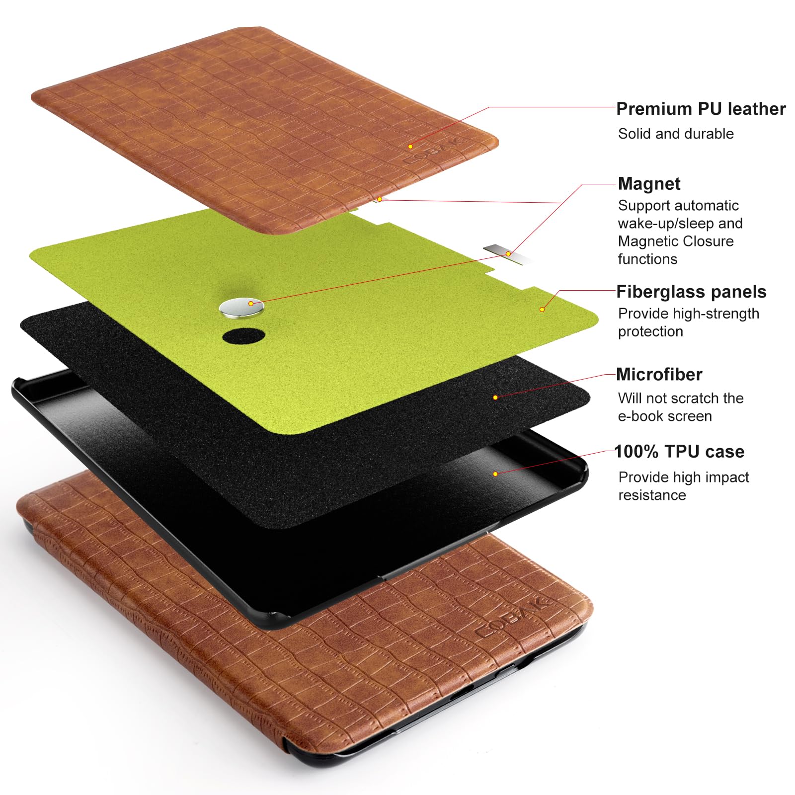 Material: Features the premium waterproof PU leather exterior, anti-scratch microfiber interior and the classic cross pattern design. This will definitely be a perfect choice of kindle case for you