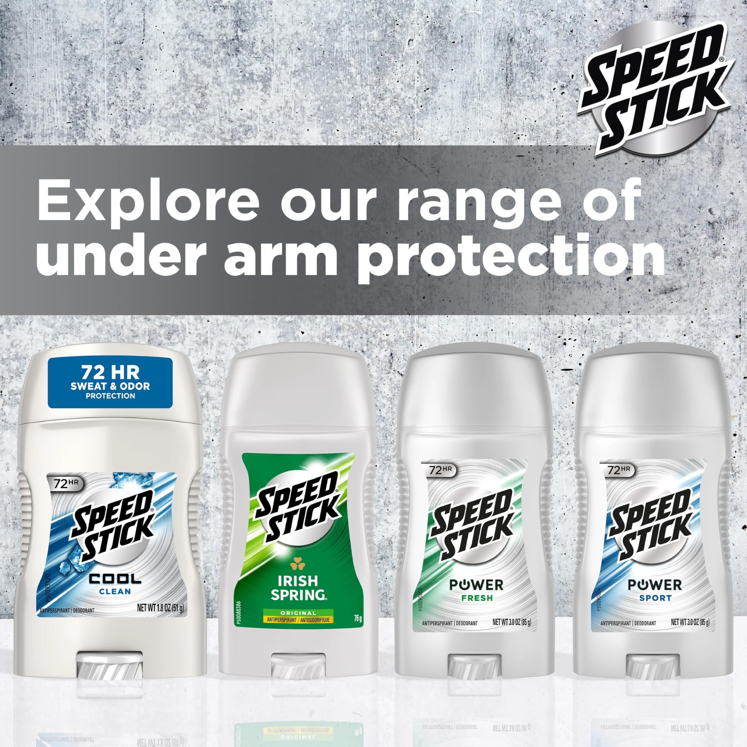 WHAT'S INCLUDED: Four 3.0 oz sticks of Speed Stick Power Antiperspirant Deodorant For Men, Fresh Scent