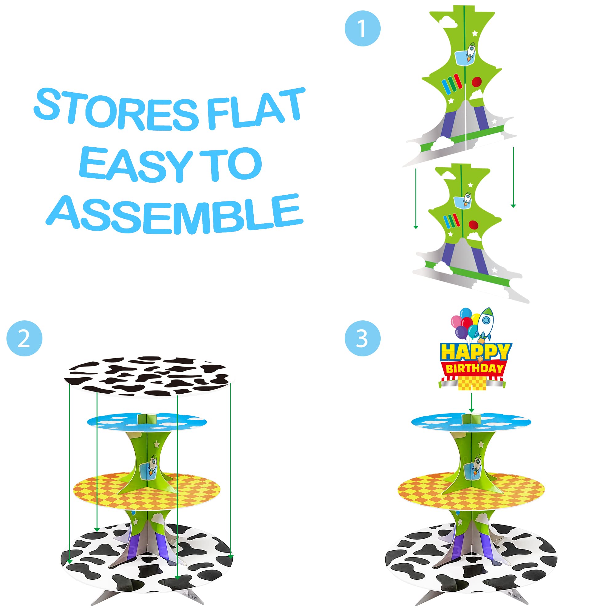 Suitable Occasion: Cartoon Story Dessert Stand, Cupcake Tower, Tea Party Pastry Tower, Cake Topping, Birthday Party Folding Cake Stand. Can elegantly display cupcakes, snacks, desserts and more at your birthday parties and wedding parties.