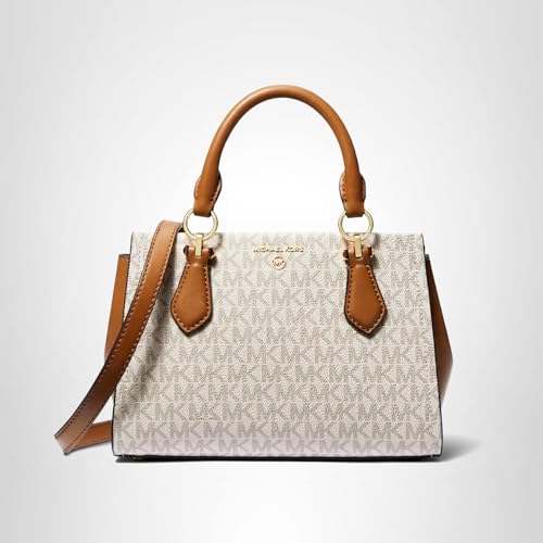Materials: Crafted from our iconic Signature logo-print canvas with gold-tone hardware Attention to Details: Interior back and front zip pockets, exterior back and front slip pockets, zip fastening and polyester lining. 9”W X 6.25"H X 4.25"D with 3.5" handle drop and optional/adjustable crossbody strap