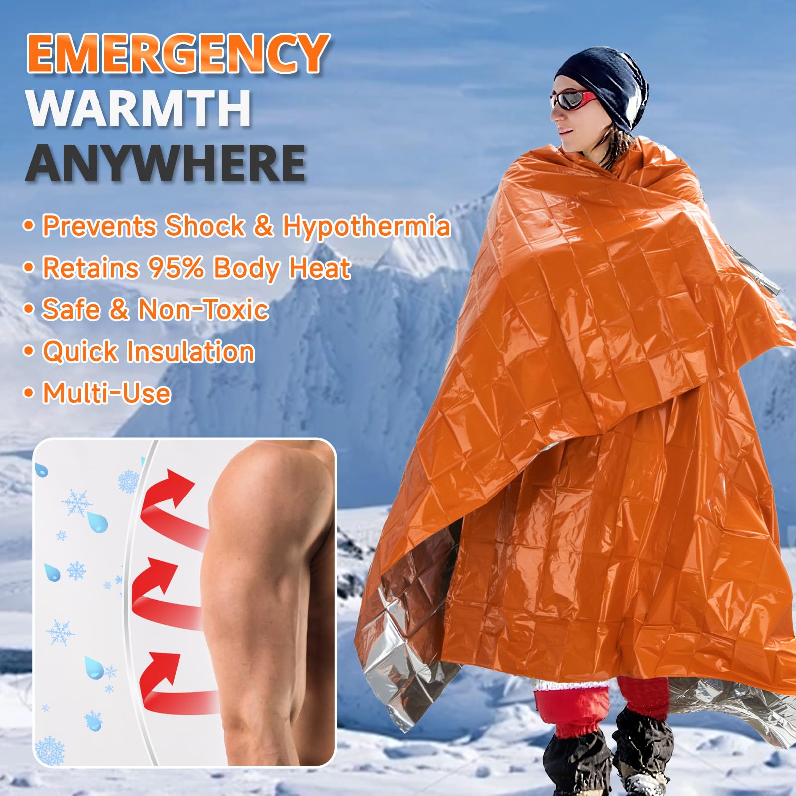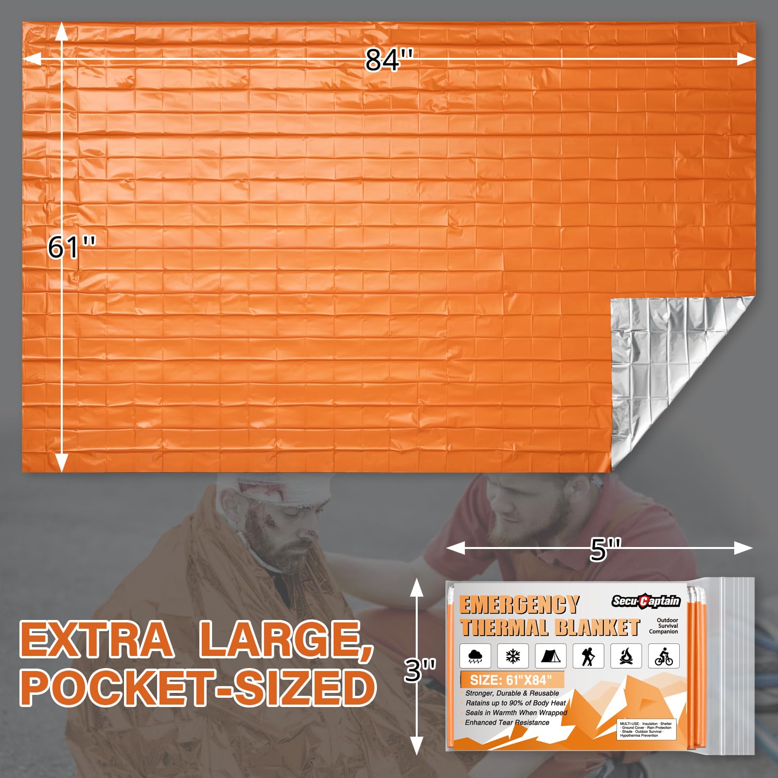 OVERSIZED 84x61 COVERAGE: Measuring 84x61 inches, this durable space blanket offers 23% larger coverage than standard blankets, providing full-body protection for all sizes. Ideal for emergency shelters, homeless care packages, or multi-person use, ensuring maximum warmth and safety