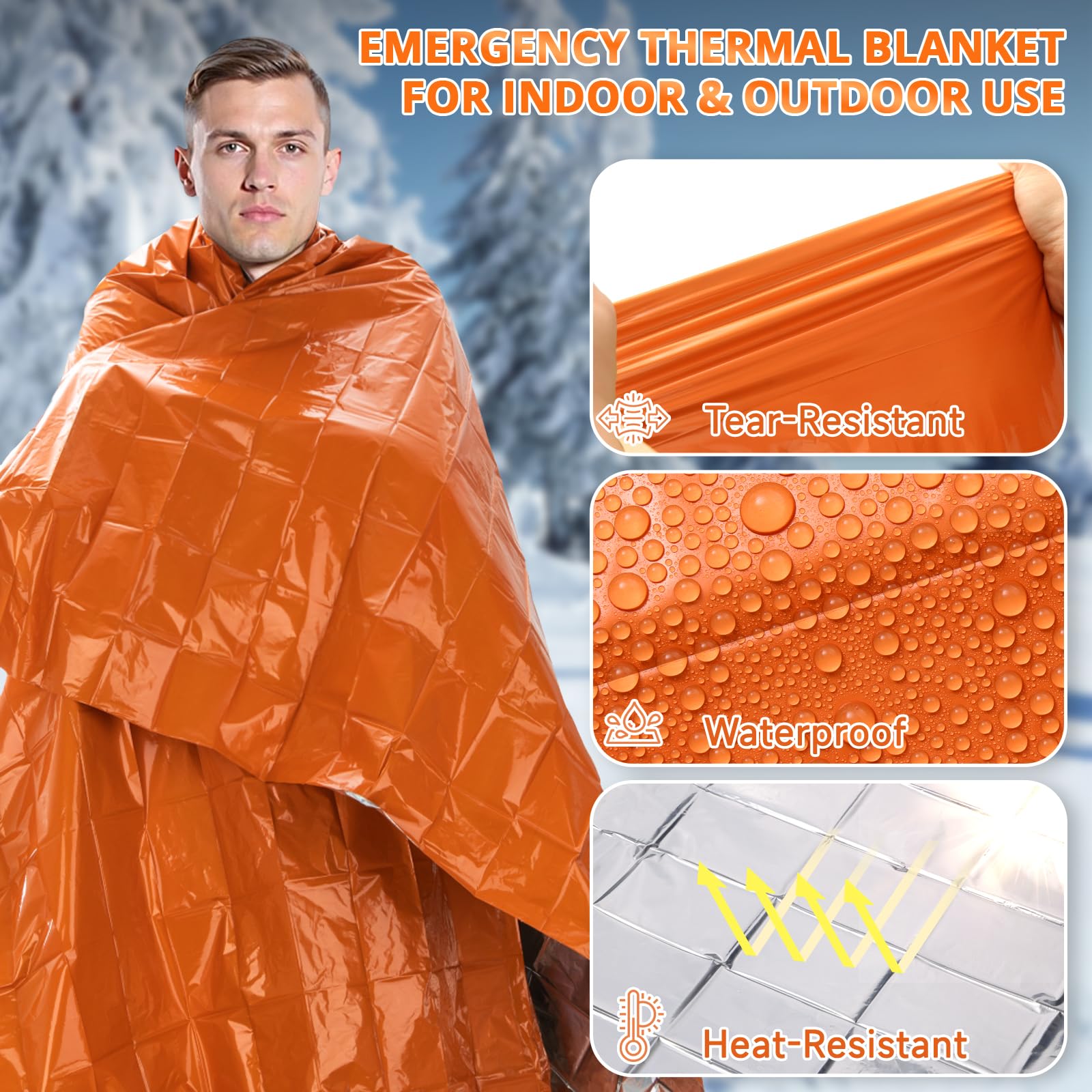 DOUBLE-STRETCHED TEAR-RESISTANT DESIGN: Reinforced, waterproof, windproof material resists tears and punctures. Perfect for car emergency thermal blankets, cold weather prep, insulated outdoor or homeless blankets, delivering lasting protection against rain, snow, and wind for tactical gear preppers