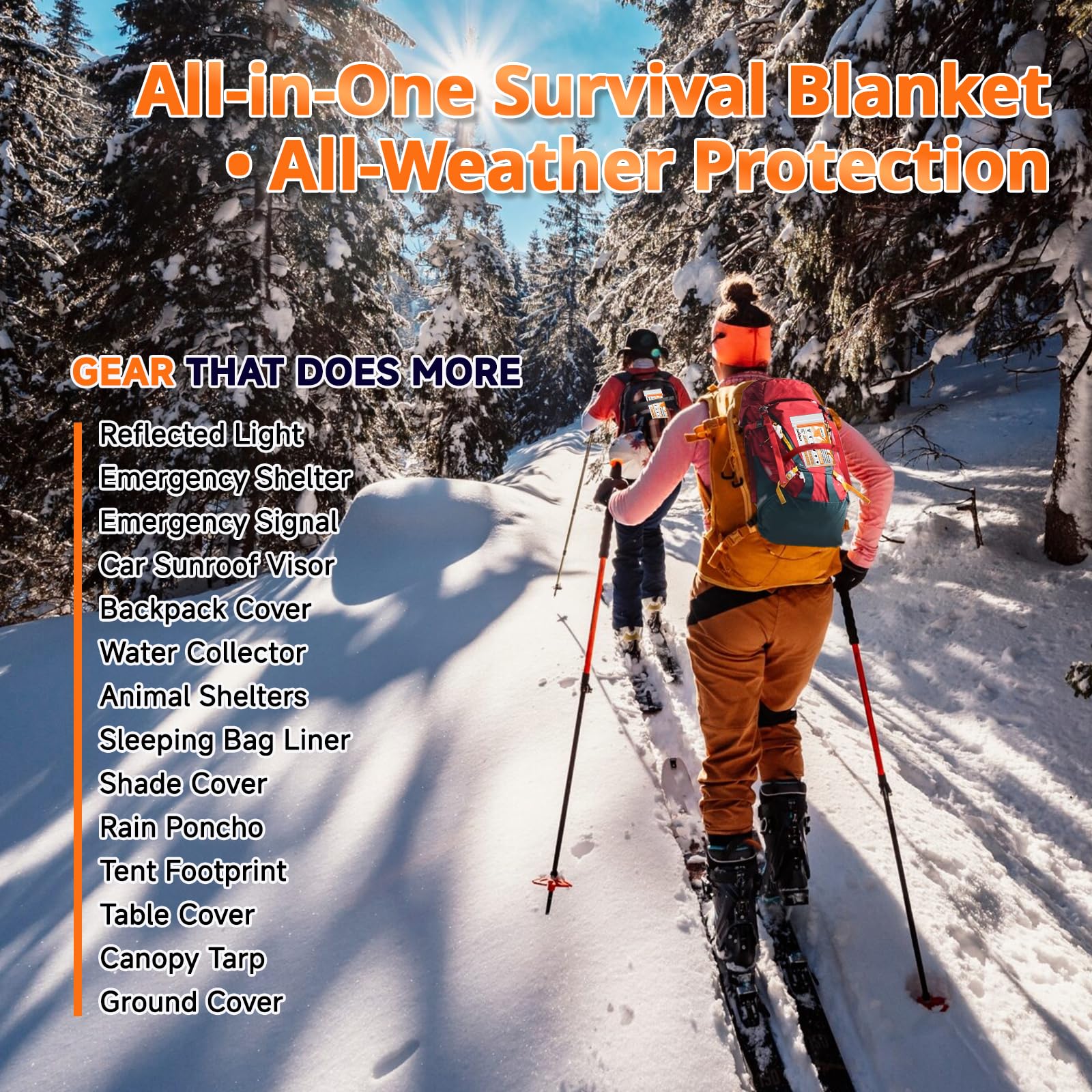 VERSATILE SURVIVAL SUPPLIES: Serves as a shelter, poncho, shade, ground cover, or emergency signal, enhanced by its oversized, reusable tear-resistant build. Suitable for marathons, camping, hiking, earthquake disasters, or first aid, this durable solution ensures long-term safety in unpredictable situations