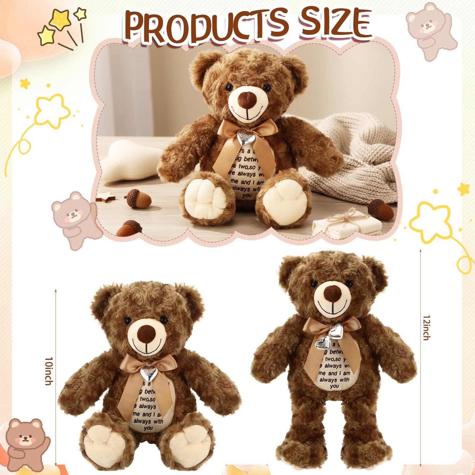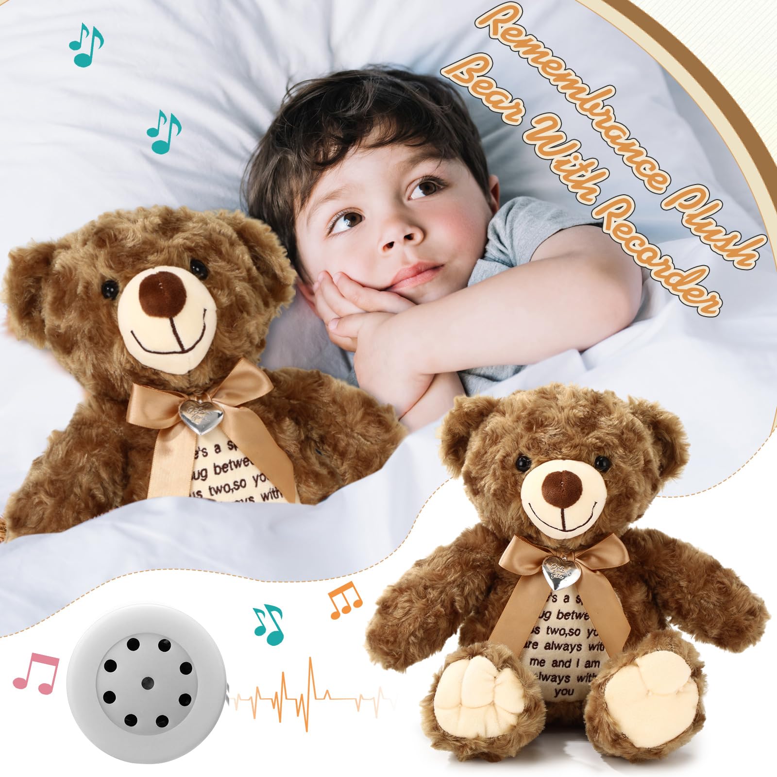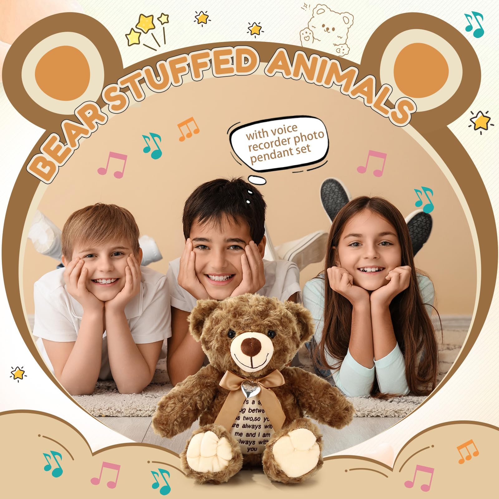 Bring Care and Encouragement: this voice stuffed animal bear has a delicate designed neckline graced with charming bows; Adding to the cuteness, a photo pendant is attached for a personalized touch; It is more than an adorable toy but an intimate keepsake for cherishing memories; Uplifting words of inspiration are sewed in front of the bear, making it not just a bear but a friend that lends warmth