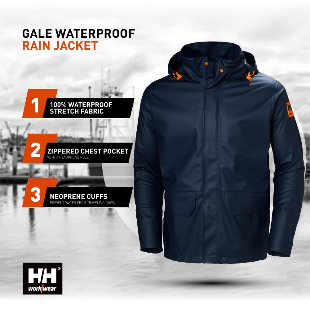 Heritage and Innovation: Helly-Hansen's Gale Men's Waterproof Rain Jacket combines professional-grade craftsmanship with cutting-edge design. Its expertly engineered features are trusted by outdoor workers and professionals for reliable performance in demanding environments