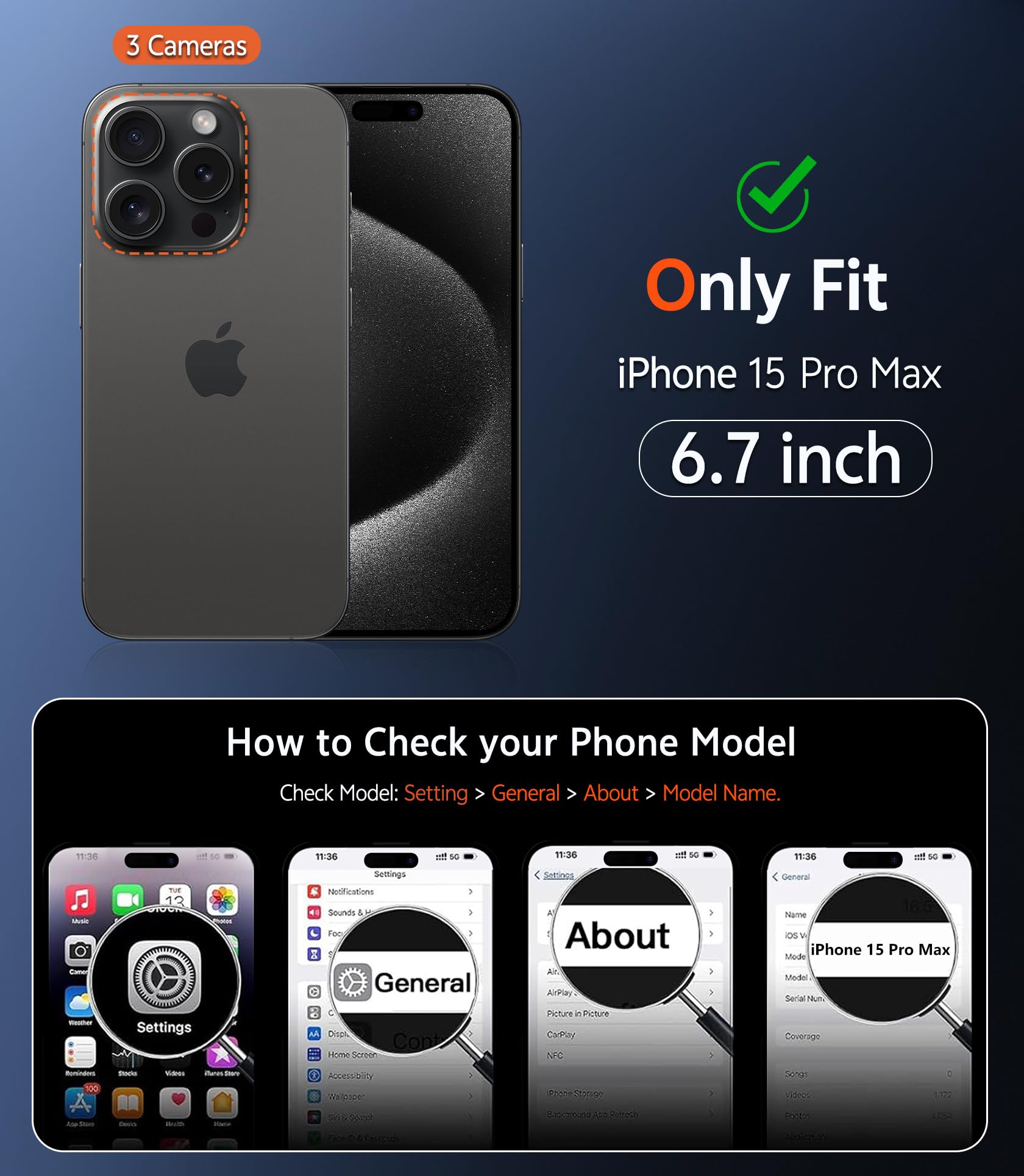 Compatibility & Never Yellow: This clear case is only designed for (iPhone 15 Pro Max 6.7 inch - 2023). Precise cut and design allow easy access to all ports, buttons, cameras, sensors, and other features. Adopted Bayer's ultra-clear TPU and PC material, effectively resists 99.99% UV rays, stains and sweat, not easy to get greasy or yellow over time, showing the original color of your phone