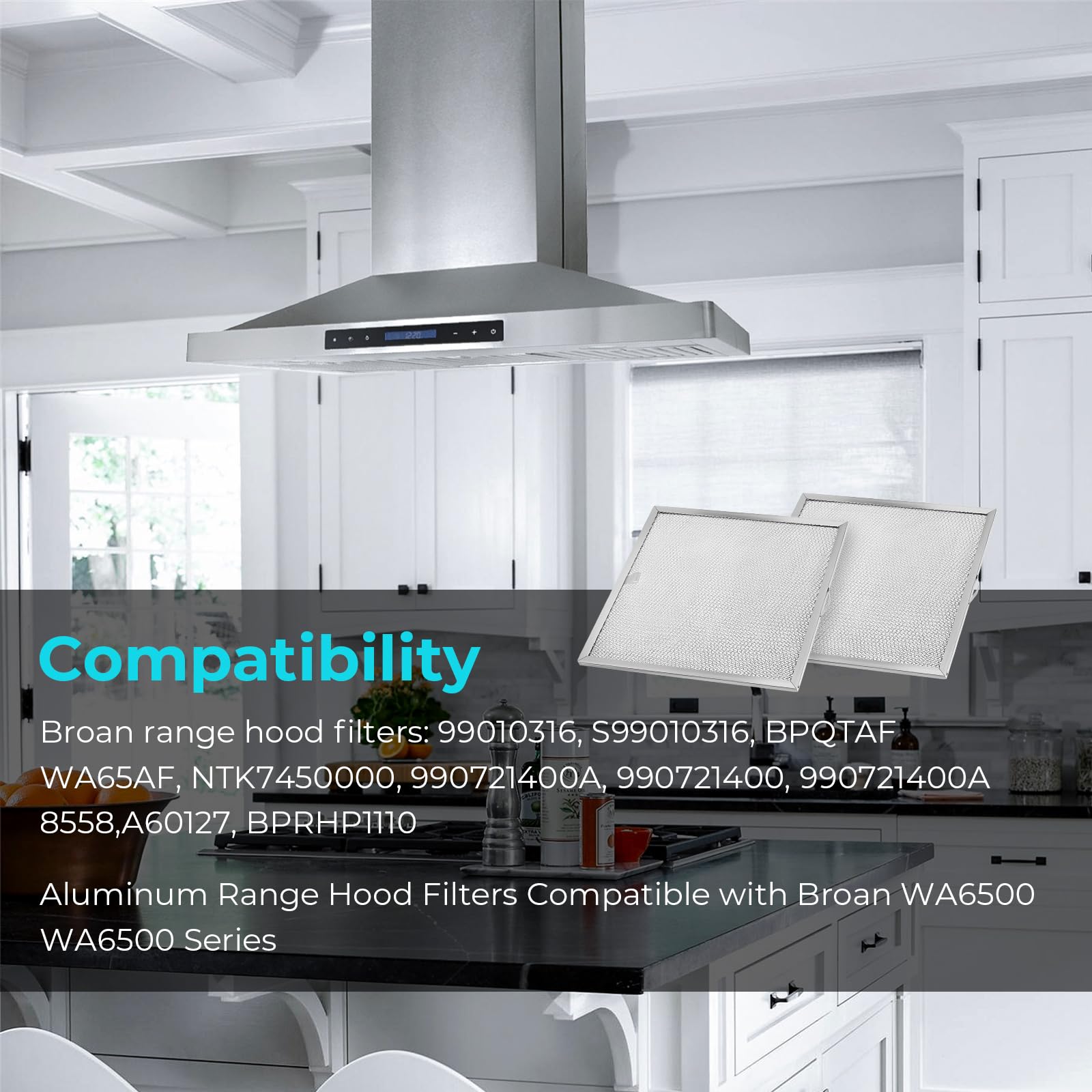 Range Hood Filter οΌPerfect fit 99010316 Range Hood Grease Filter Replacement 11 1/4" x 11 3/4" x 3/8" . Include : Pack of 2 Range Hood Filters :Compatible With Model Broan Nutone Vent Range Hood Filter 99010316, S99010316, WA65AF, NTK7450000, 990721400A, 990721400, 8558.