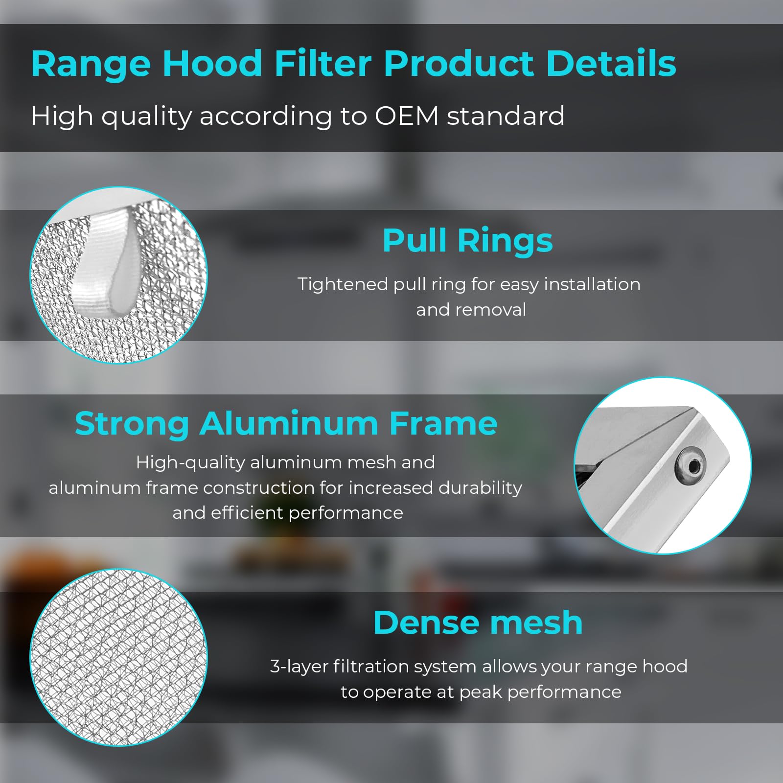 Range Hood Replacement Filter : Use this washable aluminum filter is used in ducted and ductless range hoods and microwave ovens to remove grease in the air | Improve the circulation and air flow | Keep range hoods operating efficiently. - Hood vents should be changed every 6 months for proper filtration experience a fresh, clean and safe kitchen