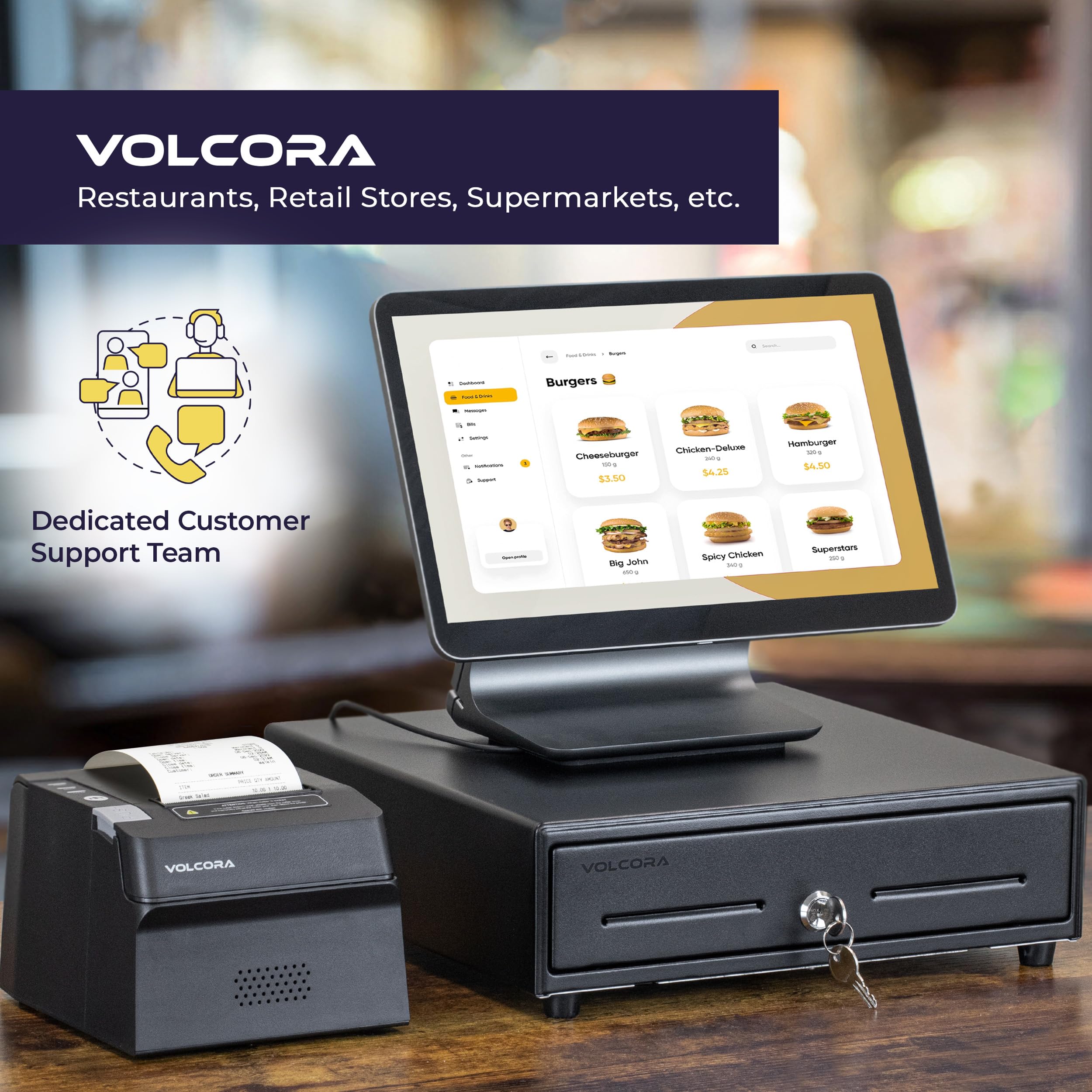 DURABLE POS CASH DRAWER: Volcora cash register drawer measures 13"x13.25"x4", voltage is at 24 VDC. Our money drawer has a heavy duty durable metal frame that is an ideal cash register for small businesses and even big establishments too.