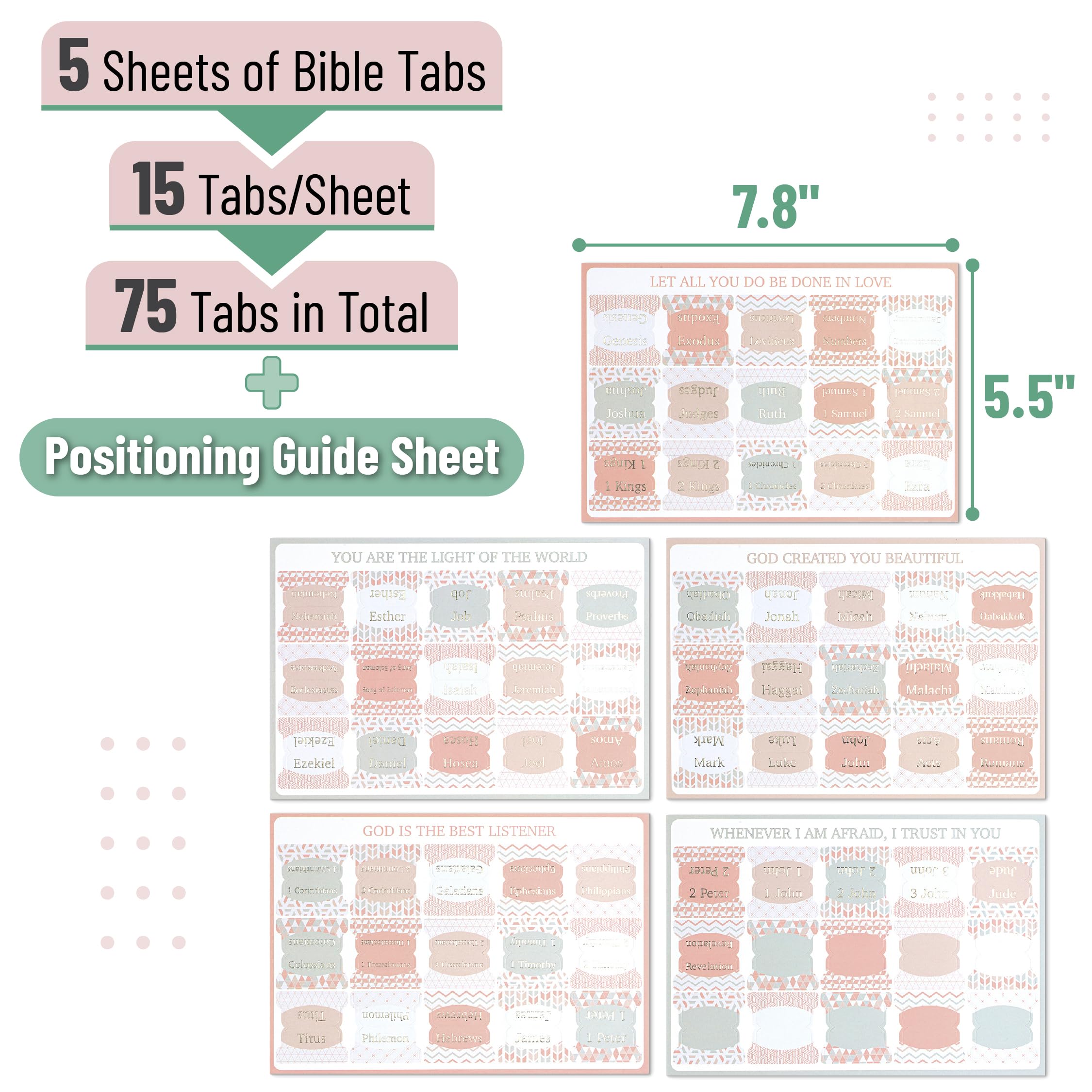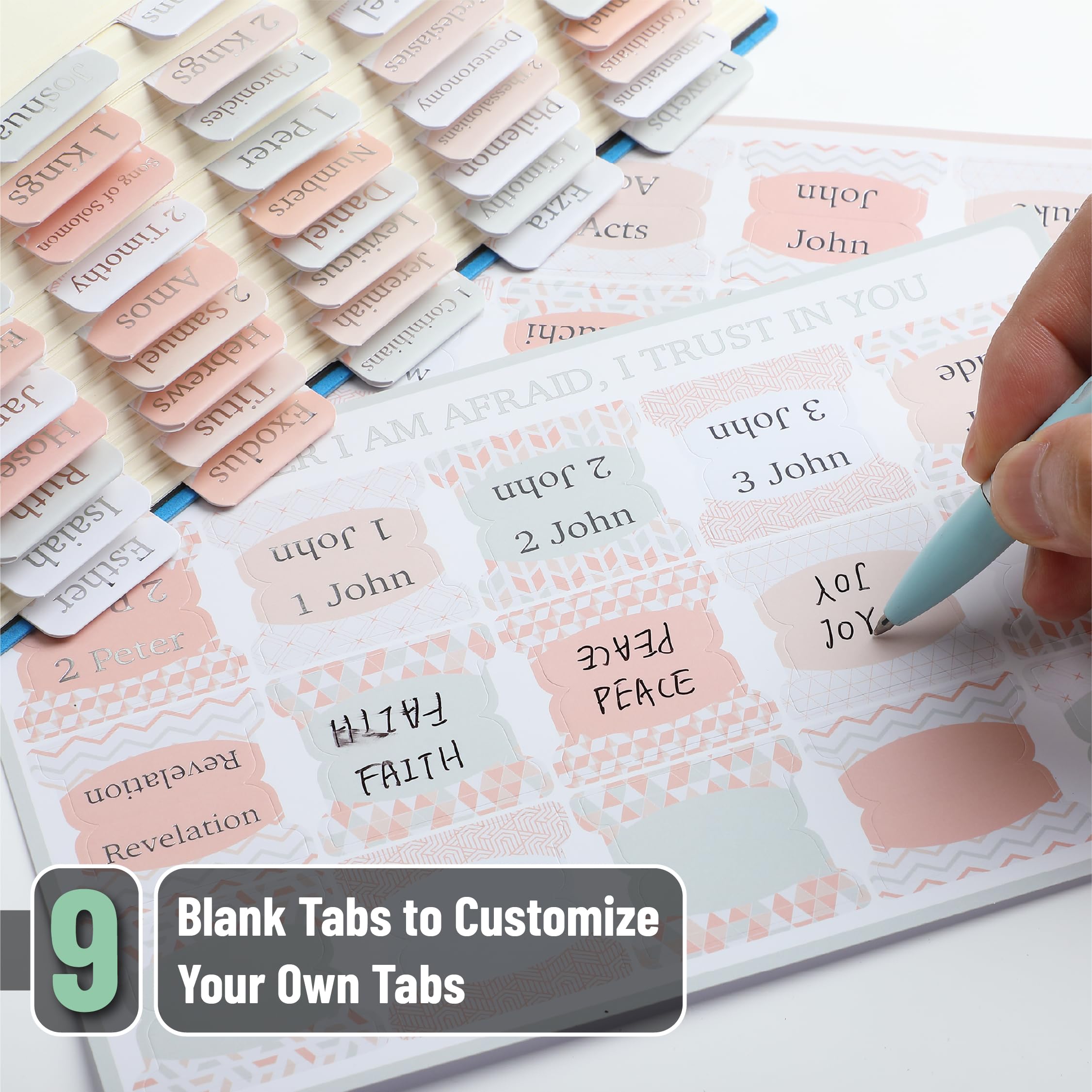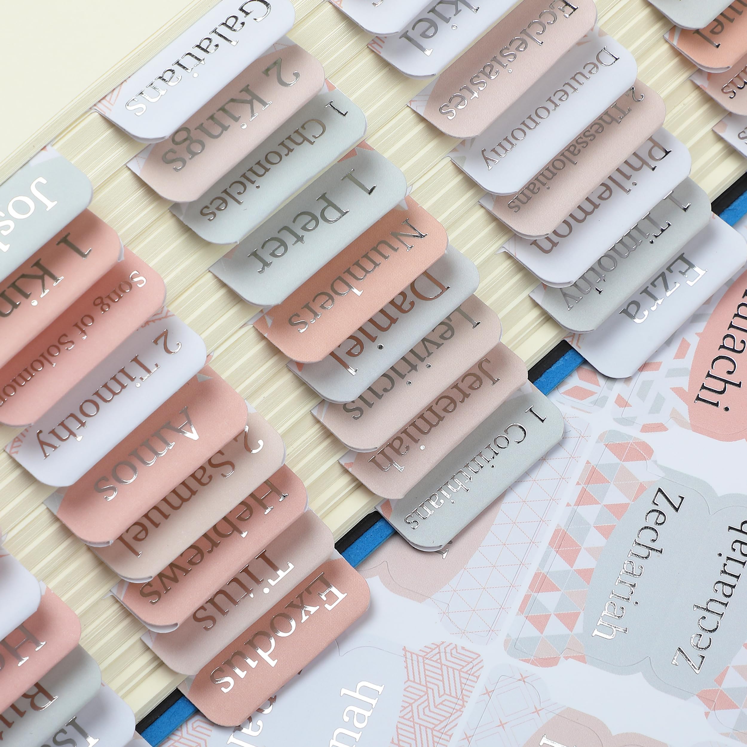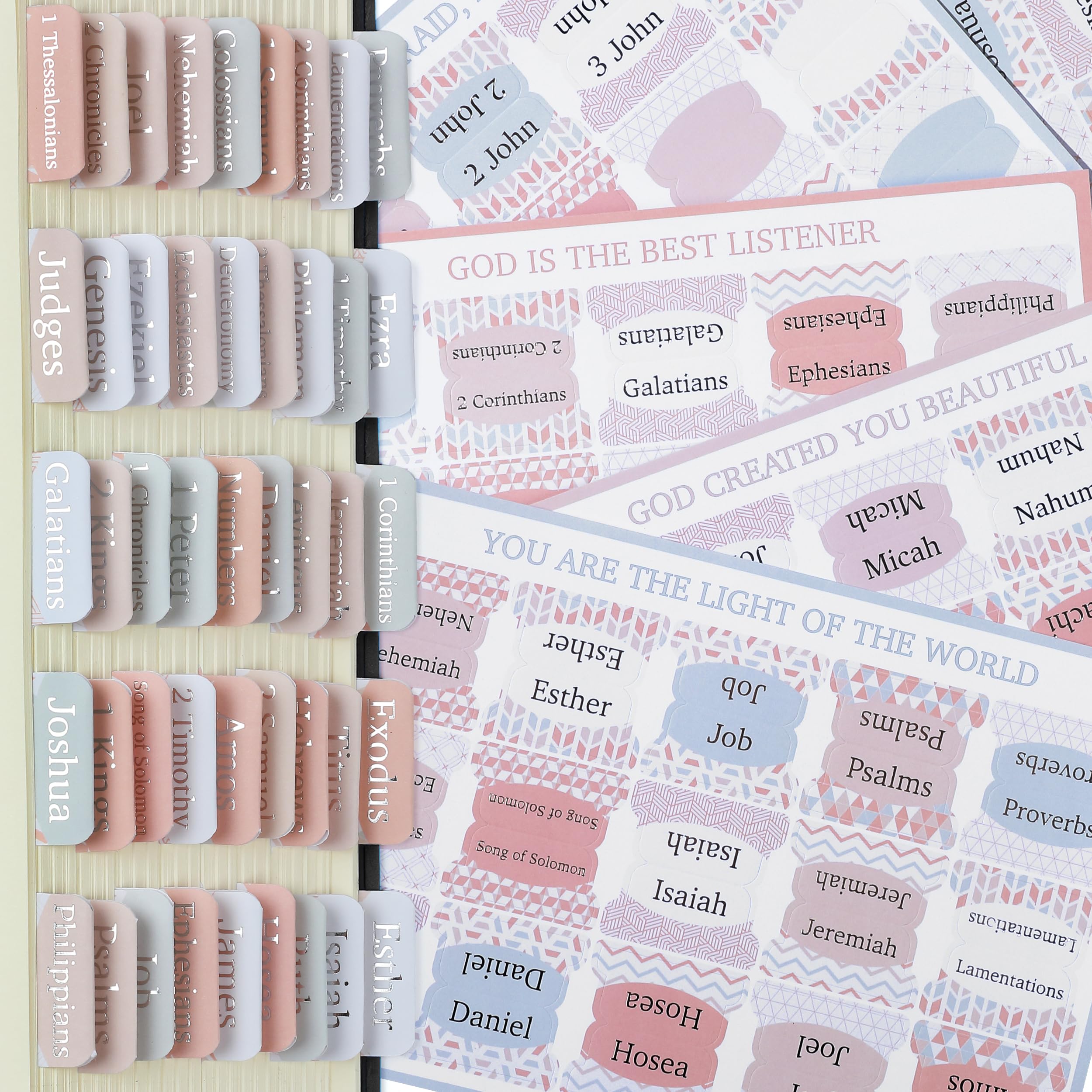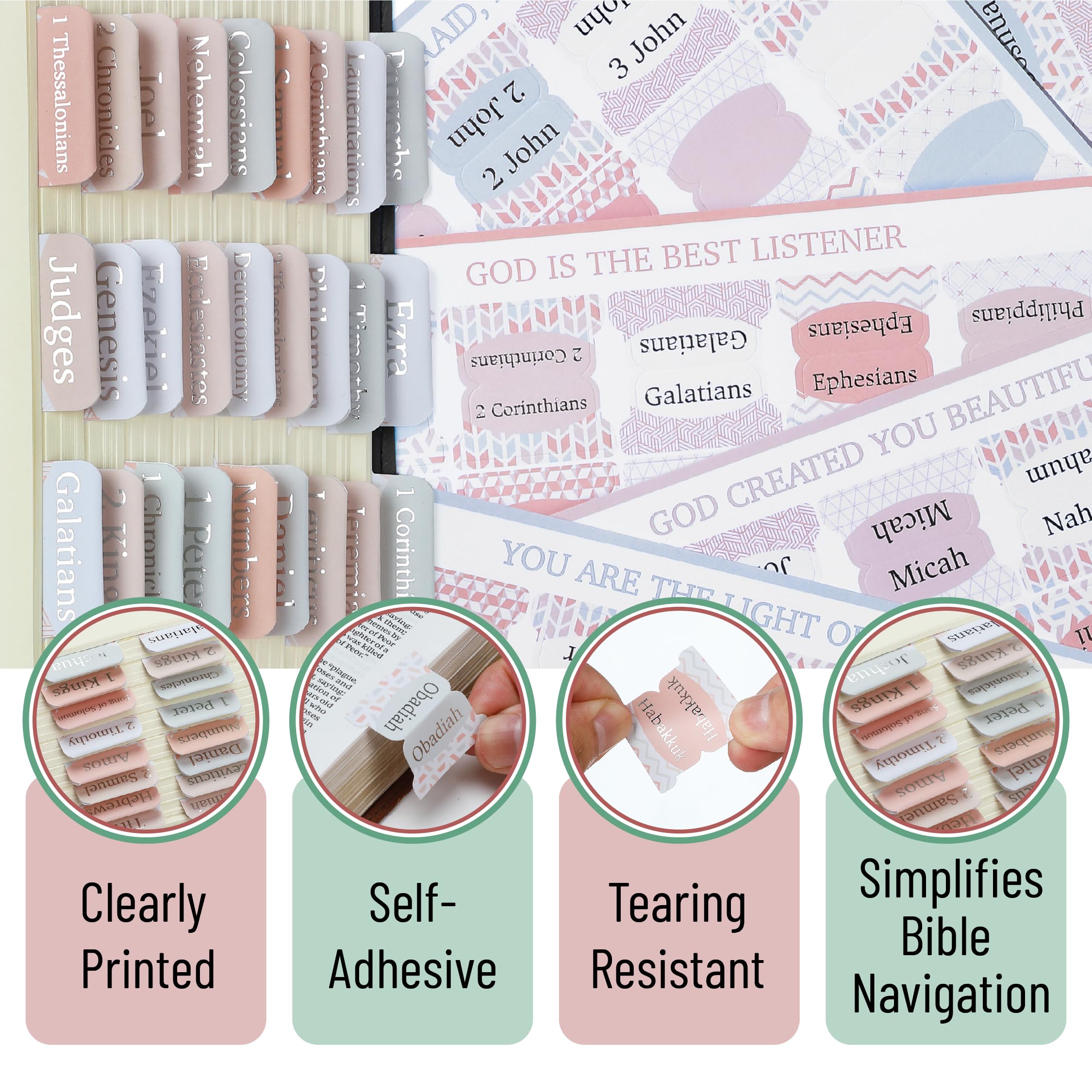 Make your Bible study more organized and inspiring with Mr. Pen set of 75 Bible tabs! Featuring an assortment of 39 Old Testament books, 27 New Testament books, and 9 blank tabs spread across five sheets.