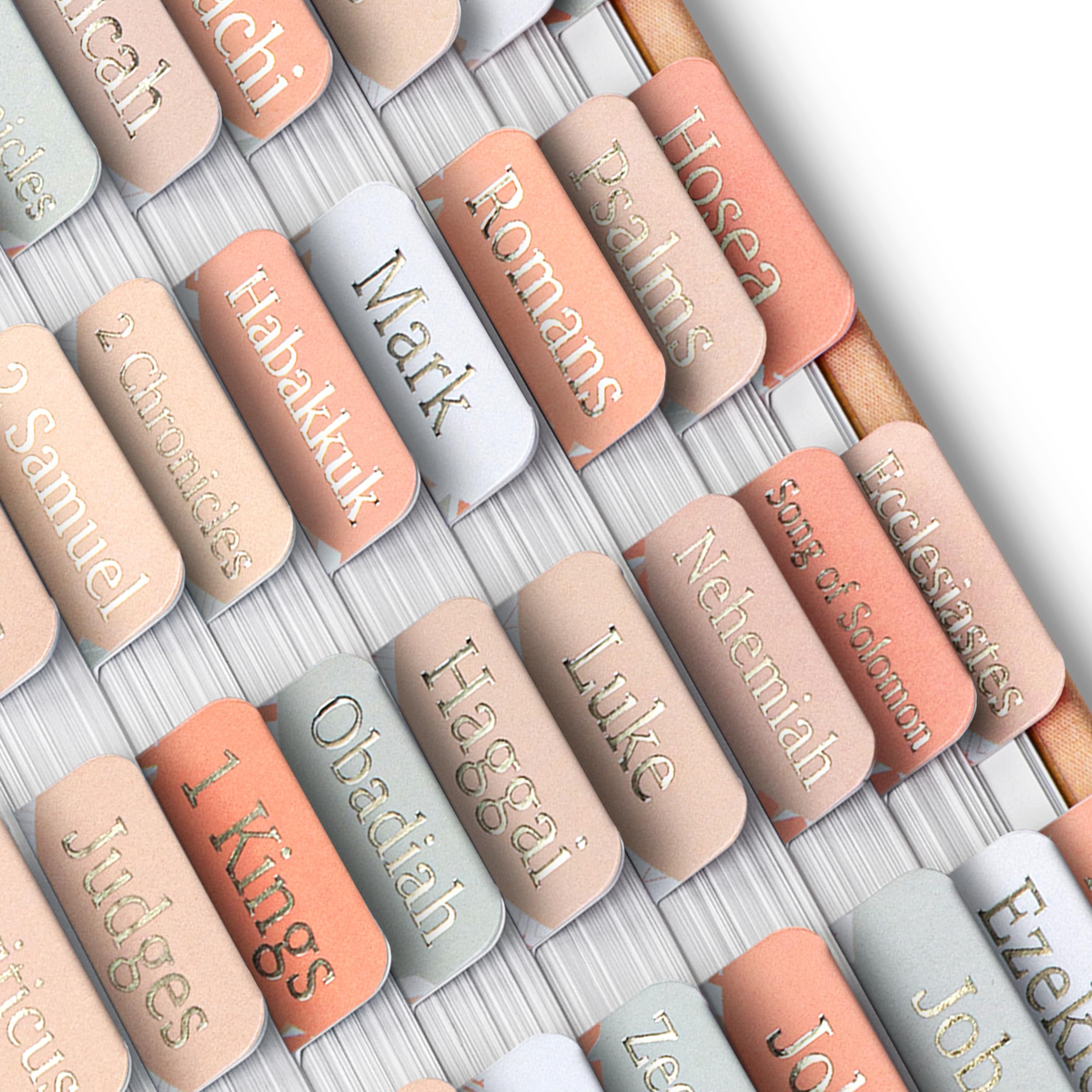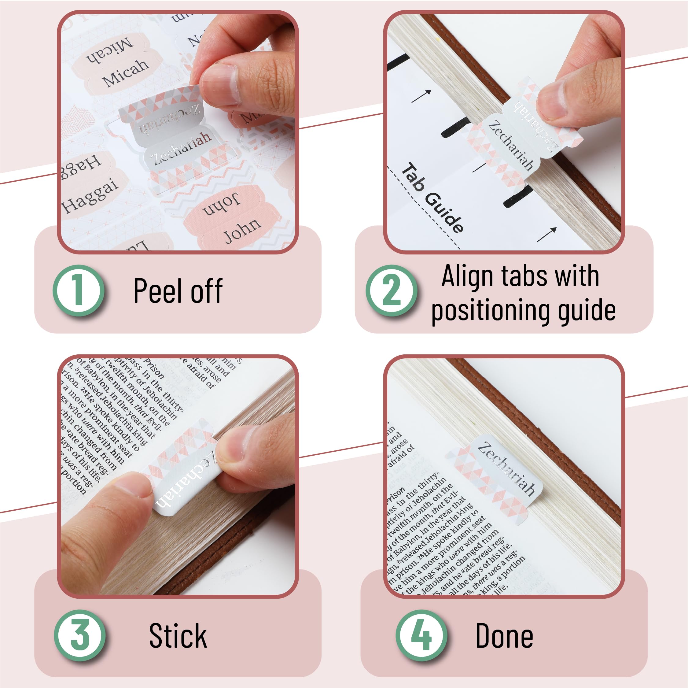 With the provided alignment guide, applying Bible indexing tabs has never been easier. These pre-cut tabs are designed to be quickly and easily folded for your convenience.