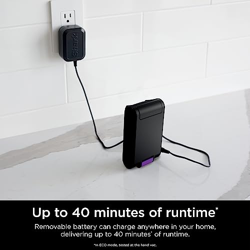 UP TO 40 MINUTES OF RUNTIME: The removable battery can charge anywhere in your home, delivering up to 40 minutes* of runtime. (*In ECO mode, tested at the hand vac.)