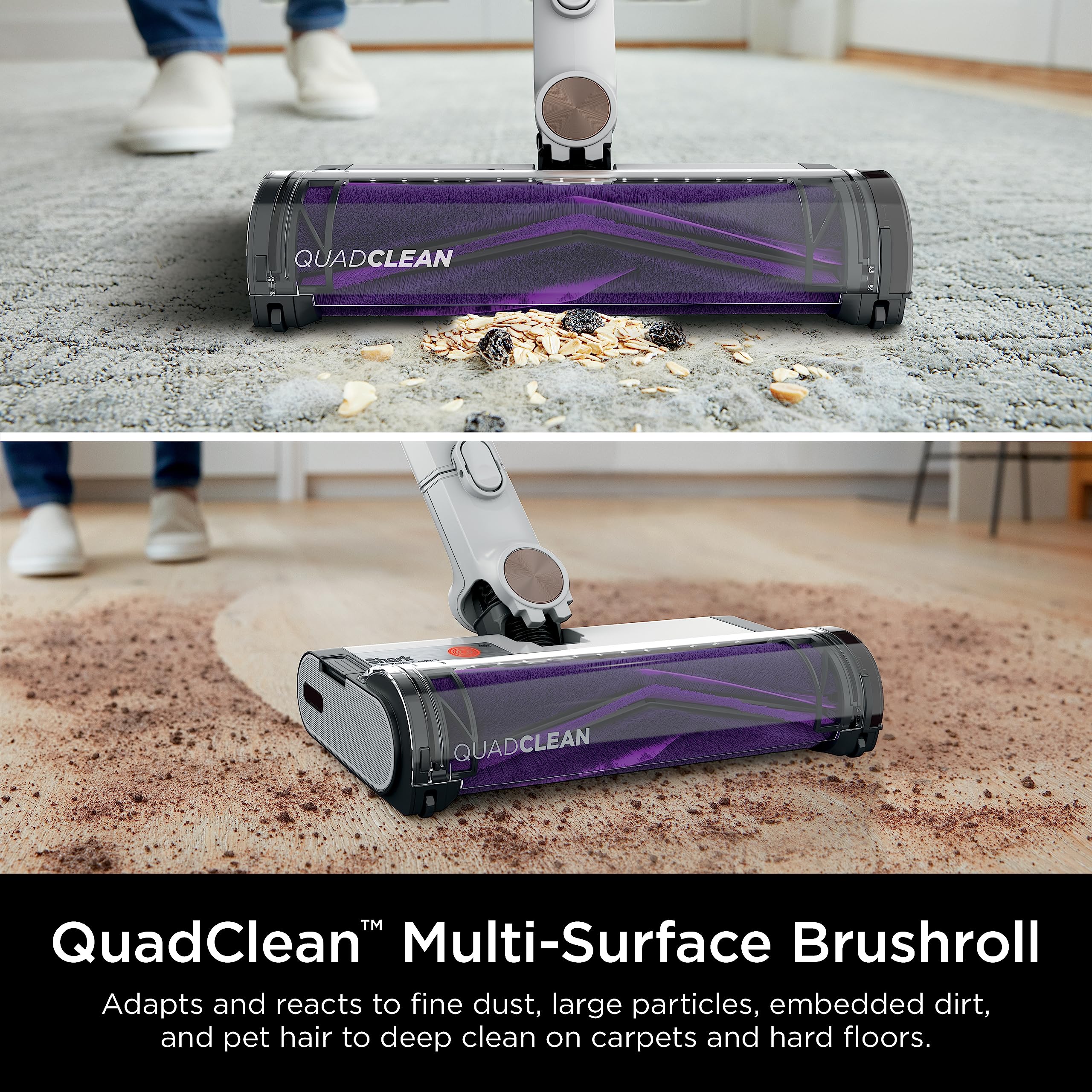 NEVER SWAP THE NOZZLES: You'll never need to swap nozzles when switching from carpets to hard floors. The QuadClean Multi-Surface Brushroll tackles four cleaning targets: fine dust, pet hair, large debris, and dust along edges.