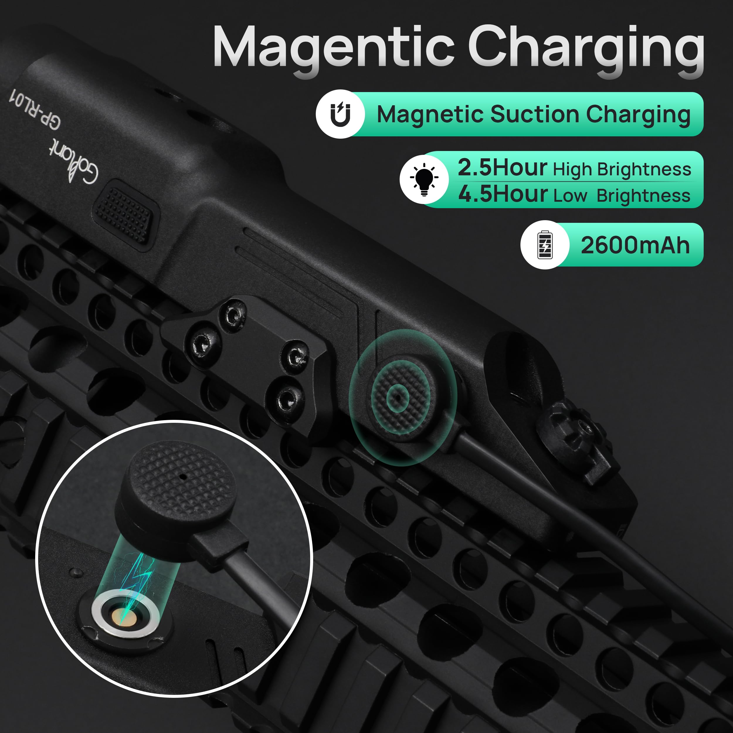 【LOW PROFILE RIFLE LIGHT WITH TWO RAILS】 Low Profile GP-RL01 is only 1.57 inch higher than the rail surface. Compatible Mlok and Picatinny rail mounts for versatile use.