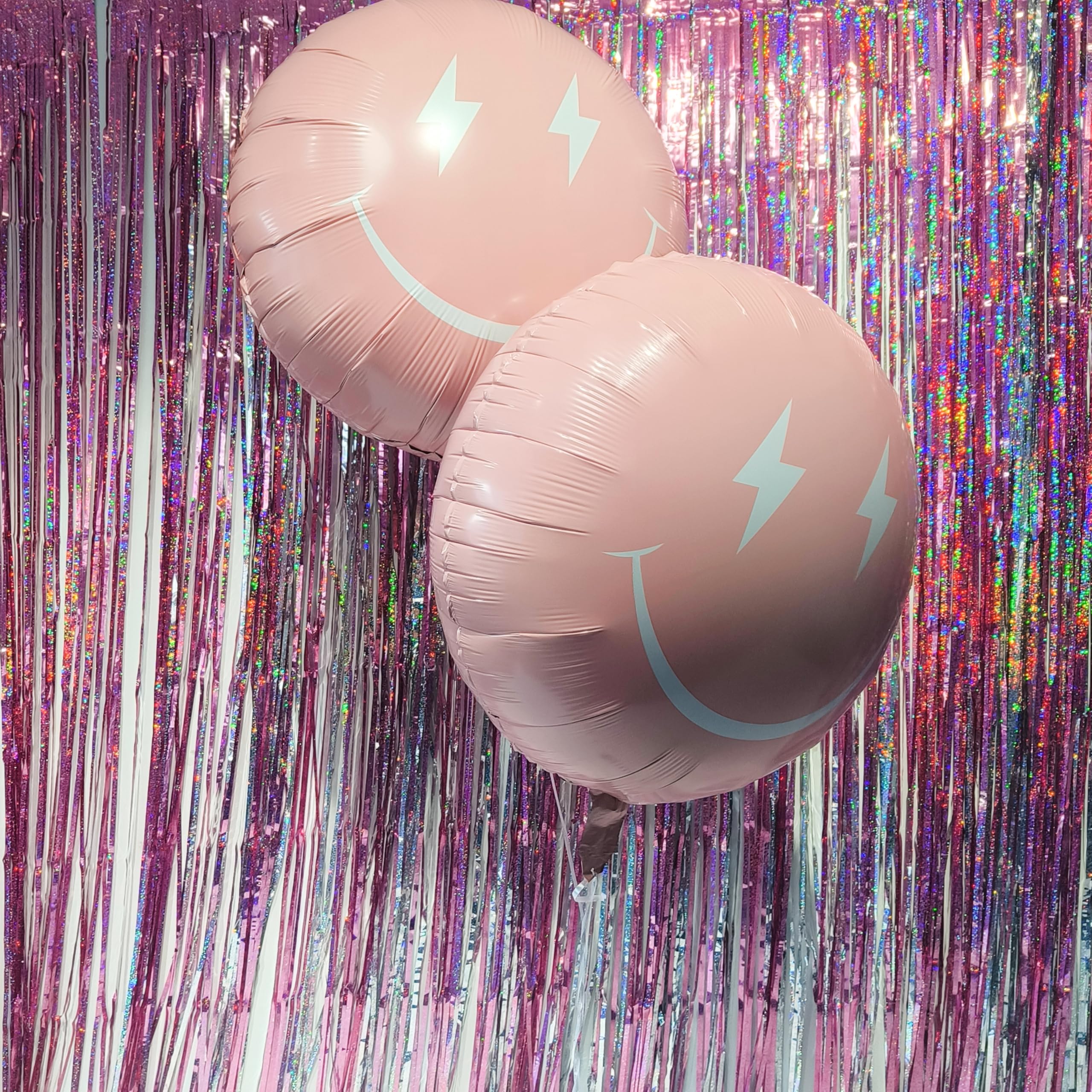 Pink Lighting Smile Face Balloons; Pink leopard lighting bolt balloons
