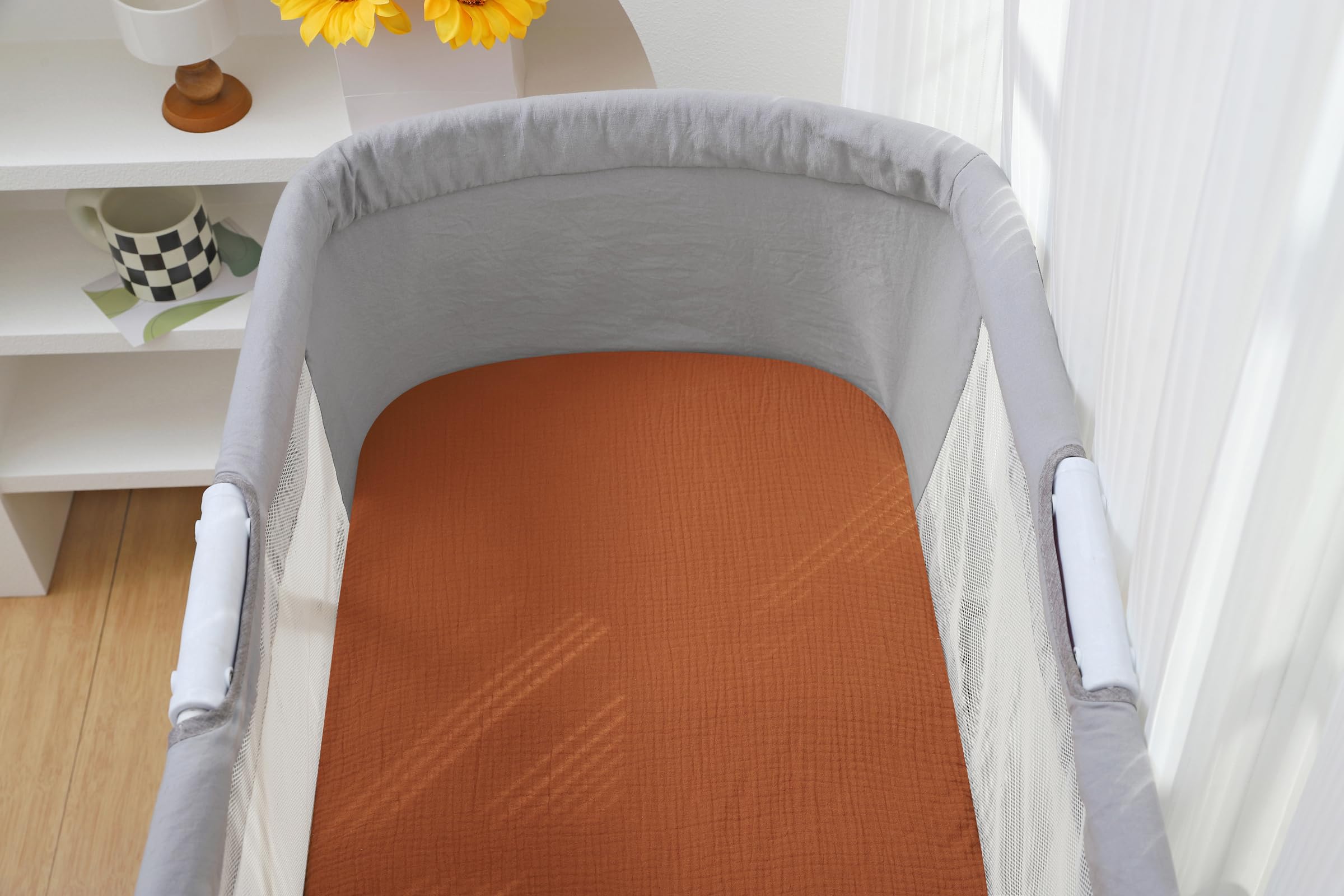 Great Value: Package includes 2 pcs muslin bassinet sheets, solid yellow and solid brick, neutral color, perfect for baby girl or baby boy. A thoughtful and practical gift for new parents or parents-to-be as our muslin bassinet sheets are a easy method to offer your baby a cozy and cuddly sleeping environment.