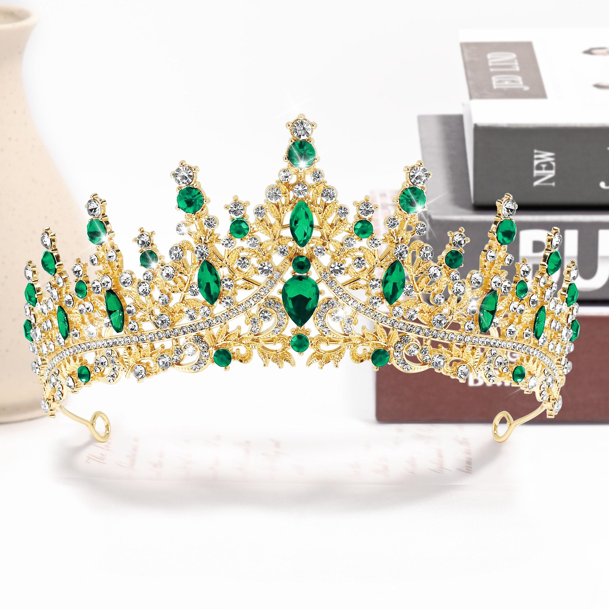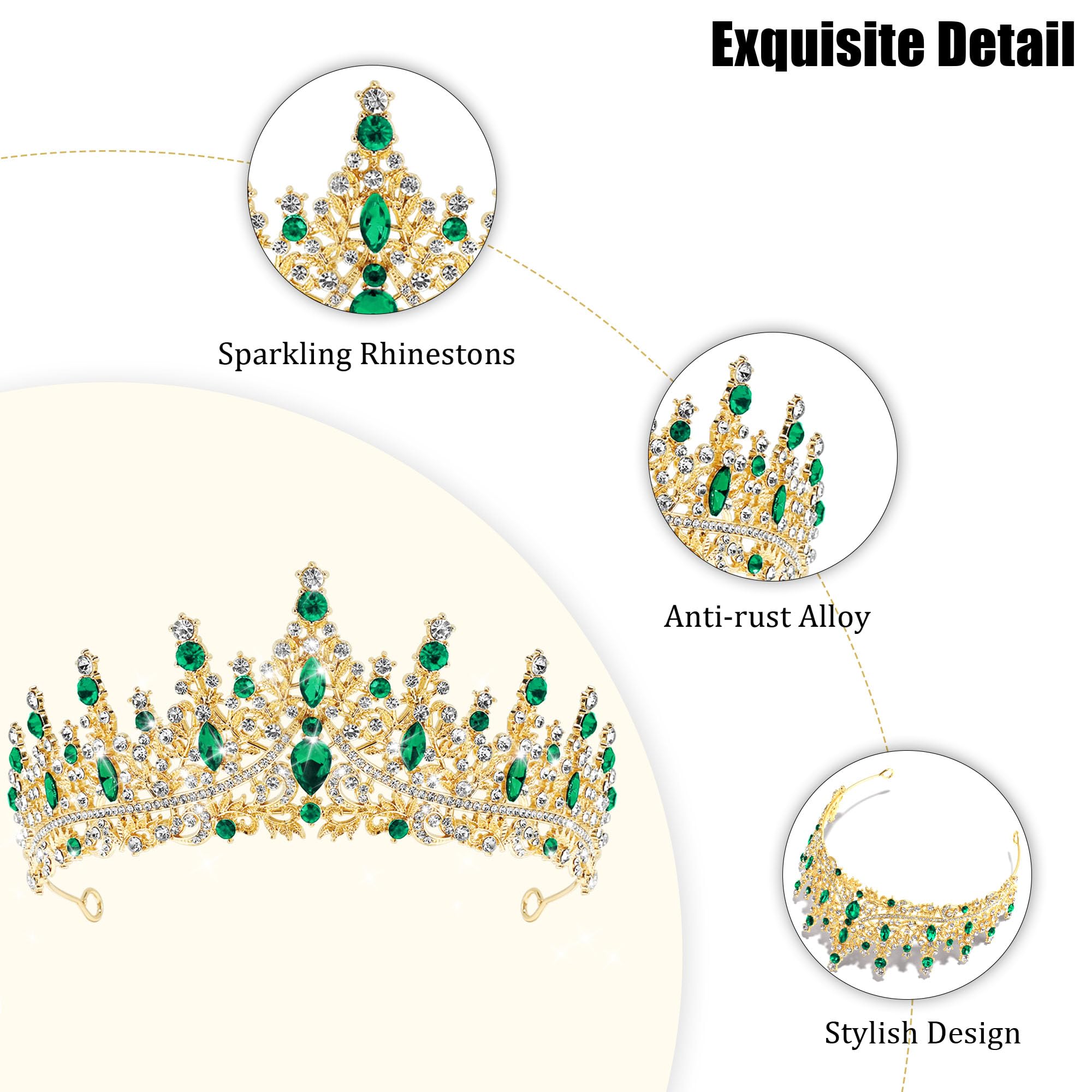 π[Shine Like A Diamond] Green tiara is finely crafted, sparkling rhinestones match well with the elegant alloy headband. Classic design have a stylish and timeless appeal, bringing elegance and glamor.