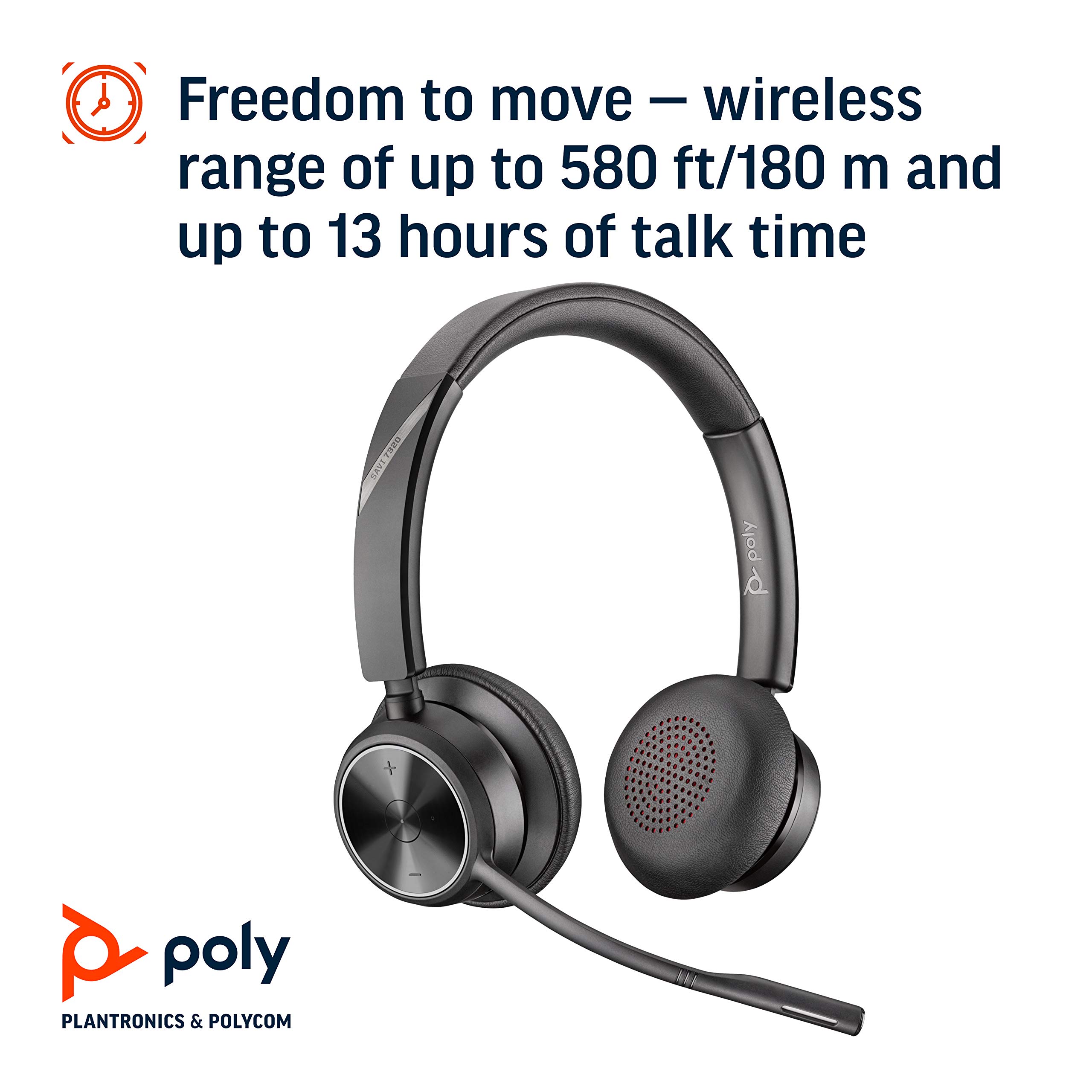 Wireless Freedom: Freedom to move with a line-of-sight wireless range of up to 580ft/180m and up to 13 hours of talk time